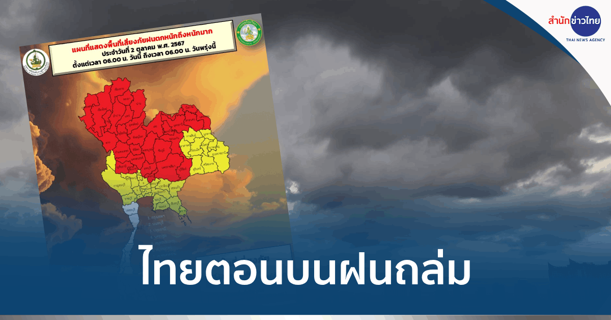 กรมอุตุนิยมวิทยา พยากรณ์อากาศ 24 ชั่วโมงข้างหน้า ประเทศไทยตอนบนจะมีลักษณะอากาศแปรปรวนเกิดขึ้น โดยมีฝนฟ้าคะนอง ลมกระโชกแรง และมีฝนตกหนักมากบางพื้นที่ในภาคเหนือและภาคตะวันออกเฉียงเหนือ ส่วนบริเวณภาคกลาง รวมทั้งกรุงเทพมหานครและปริมณฑล ภาคตะวันออก มีฝนตกหนักบางแห่ง ทั้งนี้เนื่องจากบริเวณความกดอากาศสูงหรือมวลอากาศเย็นกำลังปานกลางจากประเทศจีนได้แผ่ลงมาปกคลุมด้านตะวันออกของภาคเหนือ และภาคตะวันออกเฉียงเหนือแล้ว คาดว่าจะแผ่ลงมาปกคลุมภาคเหนือ ภาคตะวันออกเฉียงเหนือ และทะเลจีนใต้ในวันนี้ (2 ต.ค. 67) ประกอบกับร่องมรสุมเลื่อนลงมาพาดผ่านภาคเหนือตอนล่าง ภาคกลางตอนบน และภาคตะวันออกเฉียงเหนือ ขอให้ประชาชนบริเวณประเทศไทยตอนบน ระมัดระวังอันตรายจากฝนฟ้าคะนอง ลมกระโชกแรง ฝนตกหนักถึงหนักมากและฝนที่ตกสะสมซึ่งอาจทำให้เกิดน้ำท่วมฉับพลันและน้ำป่าไหลหลาก โดยเฉพาะพื้นที่ลาดเชิงเขาใกล้ทางน้ำไหลผ่านและพื้นที่ลุ่ม หลีกเลี่ยงการอยู่ในที่โล่งแจ้ง ใต้ต้นไม้ใหญ่ และป้ายโฆษณาที่ไม่แข็งแรง รวมถึงดูแลรักษาสุขภาพเนื่องจากสภาวะอากาศที่เปลี่ยนแปลงไว้ด้วย