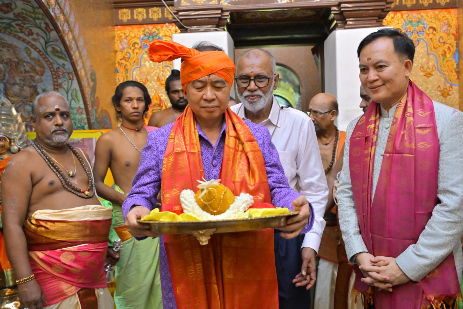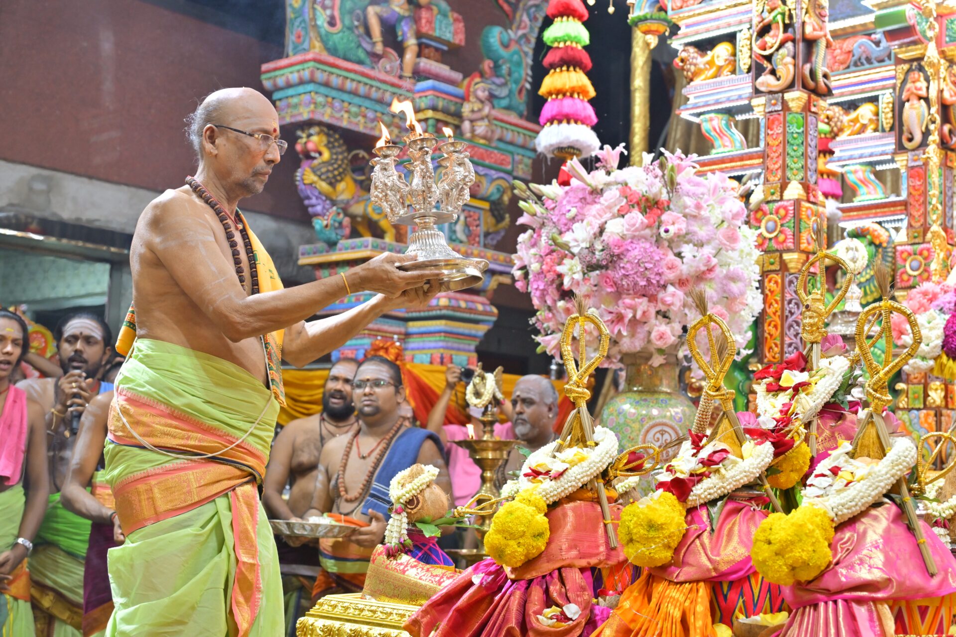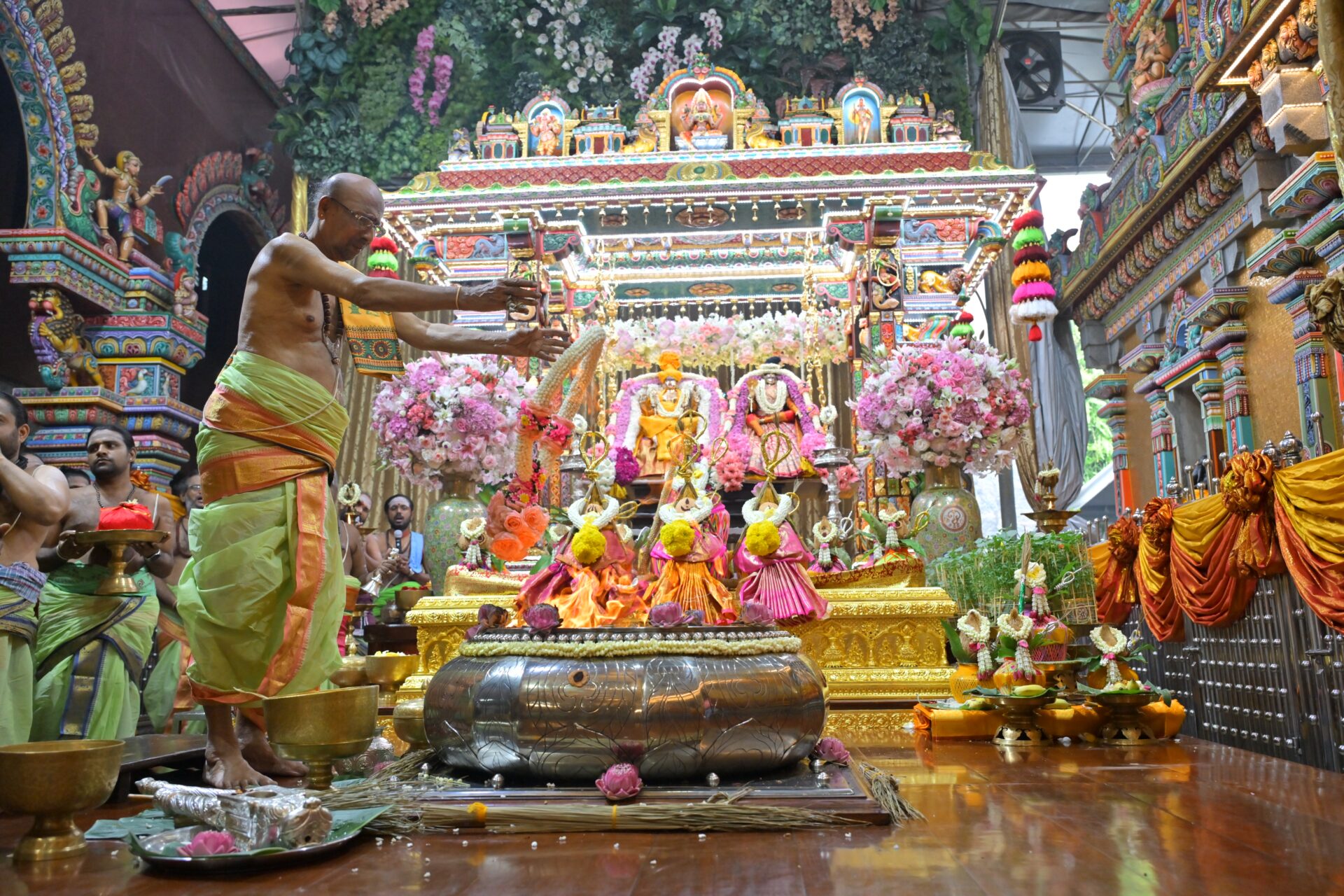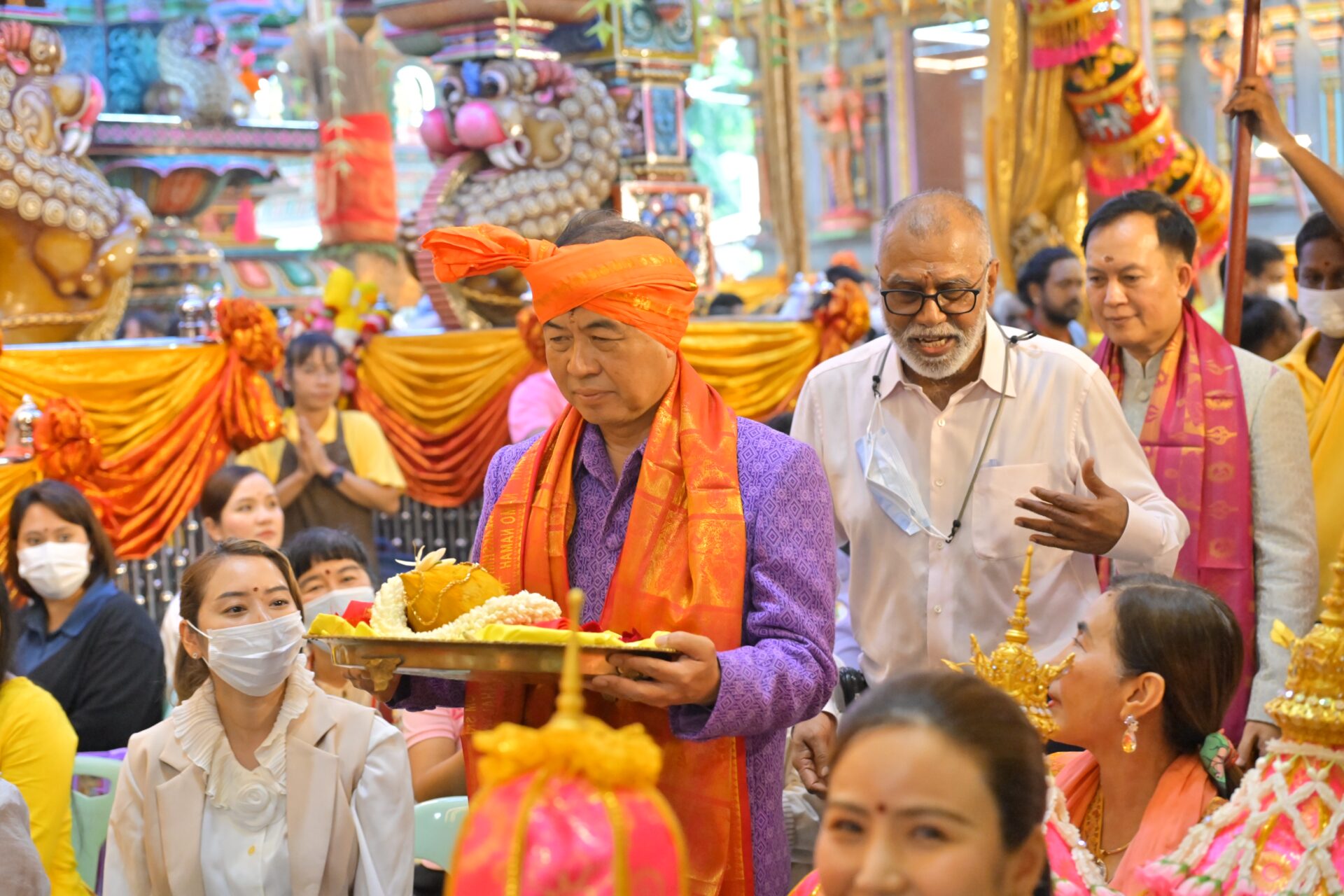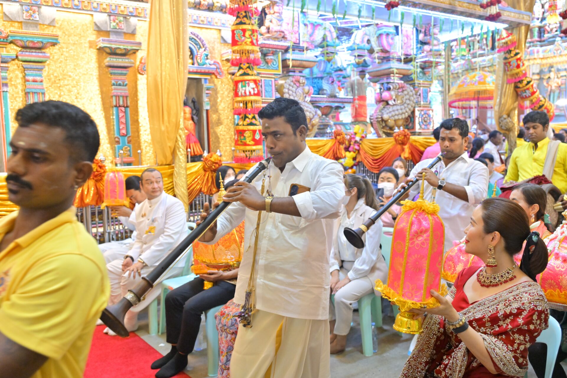 ที่สำคัญ ในวันที่ 9 ต.ค. 67 พิธีสยุมพรองค์พระแม่ศรีมหาอุมาเทวีและองค์พระศิวะมหาเทพ เป็นพิธีอภิเษกสมรสขององค์พระแม่ศรีมหาอุมาเทวีและองค์พระศิวะมหาเทพ ซึ่งจะมีการจัดรูปแบบของขบวนขันหมากและพิธีอภิเษกตามความเชื่อของศาสนาฮินดู โดยจัดเพียง 1 ครั้งในรอบปีเท่านั้น จึงเป็นพิธีกรรมที่ได้รับความสนใจจากศาสนิกชน และคู่รักหรือคู่ครองที่จะมาขอพรเพื่อการแต่งงาน และการสมหวังในความรัก โดยในปีนี้กระทรวงวัฒนธรรม โดยกรมการศาสนาได้รับเชิญร่วมในพิธีการสำคัญนี้อีกด้วย และศาสนิกชนที่เข้าร่วมในพิธีอภิเษกสมรสขององค์พระแม่ศรีมหาอุมาเทวีและองค์พระศิวะมหาเทพจะได้ร่วมในขบวนแห่ขันหมาก ซึ่งประกอบด้วยขนมมงคลบนถาดบูชาสำหรับถวายองค์เทพ โดยเมื่อจบพิธีศาสนิกชนสามารถนำกลับไปรับประทานเพื่อสิริมงคลได้