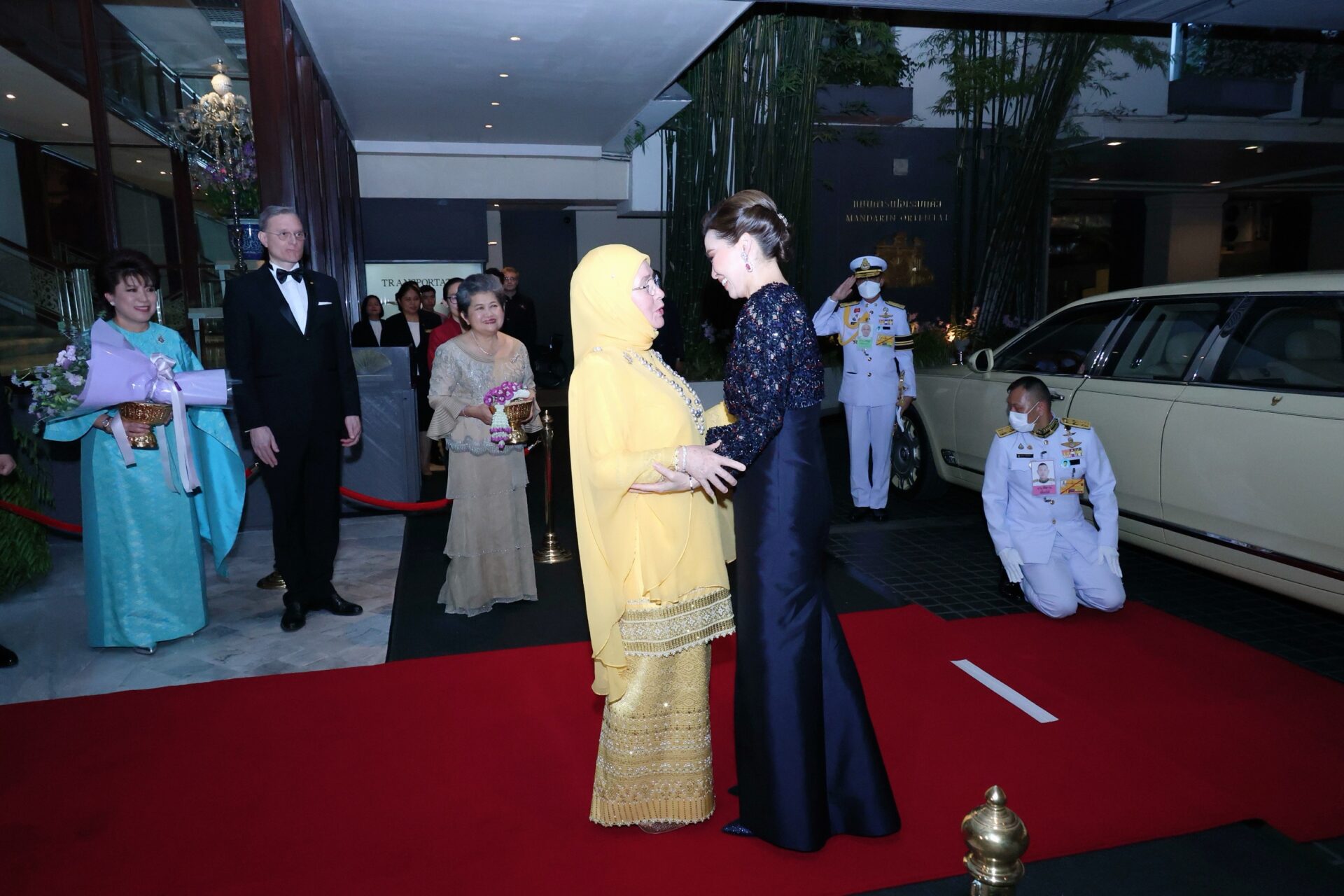 ค่ำวานนี้ (12 ต.ค.67) เวลา 20.13 น. สมเด็จพระนางเจ้า ฯ พระบรมราชินี เสด็จพระราชดำเนินไปทรงร่วมงานกาลาดินเนอร์ Islamic Fashion Festival Bangkok 2024 หรือ งานเทศกาลแฟชั่นอิสลาม ตามคำทูลเชิญของพระชายาในสุลต่านแห่งรัฐปะหัง มาเลเซีย ณ โรงแรมแมนดาริน โอเรียนเต็ล กรุงเทพฯ เขตบางรัก มี ตุนกู อาซีซะฮ์ อามีนะฮ์ ไมมูนะฮ์ อิสกันดารียะฮ์ พระชายาในสุลต่านแห่งรัฐปะหัง มาเลเซีย และ ดาโต๊ะ เซอรี ราจา เรซซา ชะฮ์ ผู้ก่อตั้งและประธานองค์กร Islamic Fashion Festival หรือ IFF เฝ้าทูลละอองธุลีพระบาทรับเสด็จ