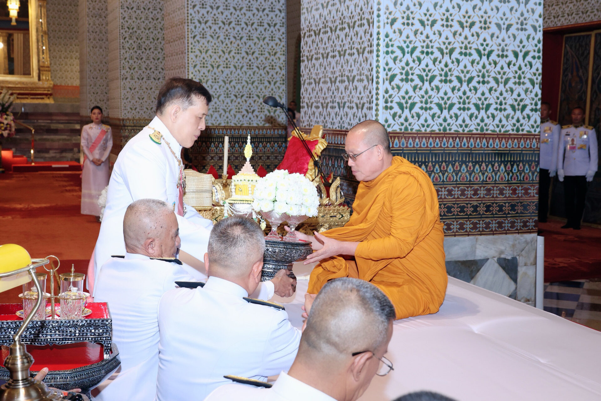 สำหรับพระบรมอัฐิและพระอัฐิทรงธรรม ทรงศีล พระธรรมวชิโรดม ถวายศีลและถวายพระธรรมเทศนา เรื่อง “นาถกรณธรรมกถา” จบแล้ว ทรงประเคนจตุปัจจัยไทยธรรมบูชากัณฑ์เทศน์ ทรงทอดผ้าไตร 18 ไตร (เที่ยวแรก) พระสงฆ์ที่สวดพระพุทธมนต์และถวายพระธรรมเทศนา สดับปกรณ์พระบรมอัฐิและพระอัฐิ ทรงหลั่งทักษิโณทก พระสงฆ์ถวายอนุโมทนา ถวายอดิเรก ถวายพระพรลา เสร็จแล้ว พระบาทสมเด็จพระเจ้าอยู่หัว ทรงทอดผ้าไตร อีกเที่ยวละ 20 รูป พระสงฆ์สดับปกรณ์ ทรงปฏิบัติเช่นนี้ จนครบ 2 เที่ยว จากนั้น ทรงกราบพระพุทธรูปประจำพระชนมวารของพระบรมอัฐิพระบาทสมเด็จพระจุลจอมเกล้าเจ้าอยู่หัว และพระพุทธรูปประจำพระชนมวารของพระอัฐิสมเด็จพระศรีพัชรินทราบรมราชินีนาถ สมเด็จพระศรีสวรินทิราบรมราชเทวี พระพันวัสสาอัยยิกาเจ้า สมเด็จพระนางเจ้าสุนันทากุมารีรัตน์ พระบรมราชเทวี สมเด็จพระปิตุจฉาเจ้าสุขุมาลมารศรี พระอัครราชเทวี และพระวิมาดาเธอ กรมพระสุทธาสินีนาฏ ปิยมหาราชปดิวรัดา ที่หน้าพระที่นั่งบุษบกมาลา เสร็จแล้ว ทรงกราบถวายบังคมพระบรมอัฐิพระบาทสมเด็จพระจุลจอมเกล้าเจ้าอยู่หัว และพระอัฐิสมเด็จพระศรีพัชรินทราบรมราชินีนาถ สมเด็จพระศรีสวรินทิราบรมราชเทวี พระพันวัสสาอัยยิกาเจ้า สมเด็จพระนางเจ้าสุนันทากุมารีรัตน์ พระบรมราชเทวี สมเด็จพระปิตุจฉาเจ้าสุขุมาลมารศรี พระอัครราชเทวี และพระวิมาดาเธอ กรมพระสุทธาสินีนาฏ ปิยมหาราชปดิวรัดา ที่หน้าพระแท่นพระนพปฎลมหาเศวตฉัตร ทรงรับการถวายความเคารพของผู้มาเฝ้าทูลละอองธุลีพระบาท แล้วเสด็จออกจากพระที่นั่งอมรินทรวินิจฉัย ประทับรถยนต์พระที่นั่ง เสด็จพระราชดำเนินกลับ. – สำนักข่าวไทย