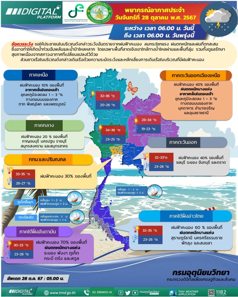 พยากรณ์อากาศรายภาค วันที่ 28 ต.ค.67
