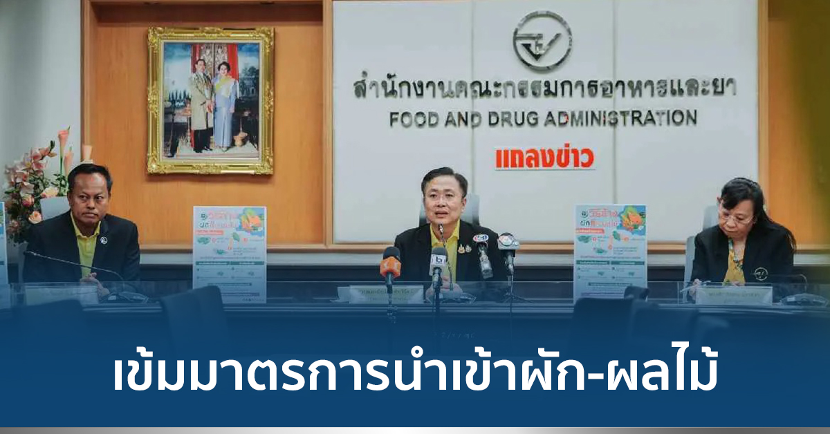 นพ.สุรโชค ต่างวิวัฒน์ เลขาธิการคณะกรรมการอาหารและยา (อย.) แถลงต่อสื่อมวลชนว่า สำนักงานคณะกรรมการอาหารและยา (อย.) มีมาตรการเฝ้าระวังความปลอดภัยของผักและผลไม้อย่างเข้มงวด โดยเฉพาะกลุ่มที่มีความเสี่ยงสูง จะถูกกักไม่ให้มีการนำเข้าจนกว่าจะพิสูจน์ได้ว่ามีความปลอดภัย เป็นไปตามมาตรฐานที่กฎหมายกำหนด เมื่อผักและผลไม้ได้รับการอนุญาตนำเข้ามาจำหน่ายภายในประเทศแล้ว อย. มีมาตรการในการกำกับดูแลต่อเนื่อง โดยเก็บตัวอย่าง ณ สถานที่จำหน่าย โรงคัดและบรรจุผักผลไม้ เพื่อส่งตรวจวิเคราะห์ที่กรมวิทยาศาสตร์การแพทย์ ตามประกาศกระทรวงสาธารณสุขที่เกี่ยวข้องเป็นประจำทุกปี รวมทั้งร่วมกับสำนักงานสาธารณสุขจังหวัดทั่วประเทศในการกำกับดูแลเฝ้าระวังผักและผลไม้ที่อาจมีสารกำจัดศัตรูพืชการเกษตรตกค้างที่สถานที่จำหน่ายและสถานที่ผลิตโรงคัดและบรรจุผักผลไม้ทั่วประเทศ จากผลการตรวจวิเคราะห์ผักและผลไม้ในปี 2567 มีการเก็บตัวอย่างส่งห้องปฏิบัติการที่ด่านอาหารและยา จำนวน 506 ตัวอย่าง ผ่านมาตรฐาน 329 ตัวอย่าง ตกมาตรฐาน 177 ตัวอย่าง คิดเป็นร้อยละ 35 เมื่อพบว่าผักและผลไม้มีสารพิษตกค้างไม่เป็นไปตามกฎหมายกำหนด จะดำเนินคดีผู้กระทำผิดทุกราย ฐานนำเข้าเพื่อจำหน่ายอาหารผิดมาตรฐาน มาตรา 25 (3) ต้องระวังโทษปรับไม่เกิน 50,000 บาท และจัดการกับสินค้าด้วยการทำลายหรือส่งคืนประเทศต้นทาง นอกจากนี้ ยังมีการตรวจสอบโดยใช้ชุดทดสอบเบื้องต้นอีกกว่า 10,000 ตัวอย่าง