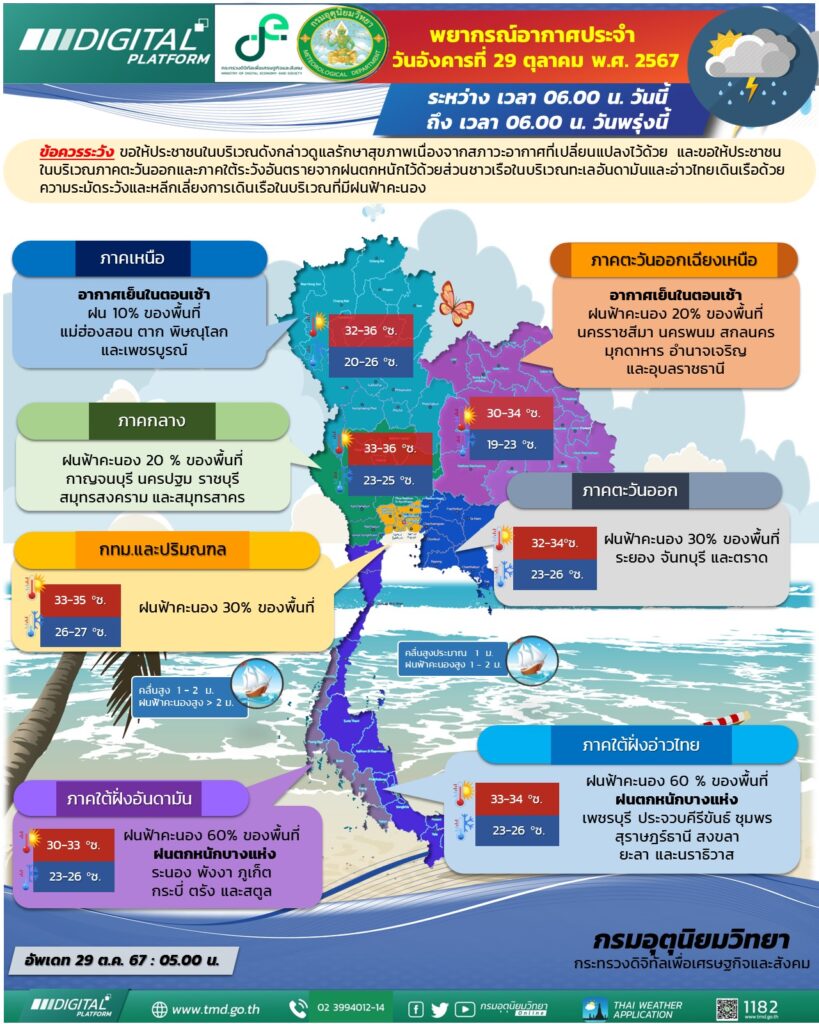 พยากรณ์อากาศรายภาค วันที่ 29 ต.ค.67