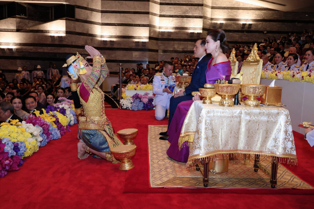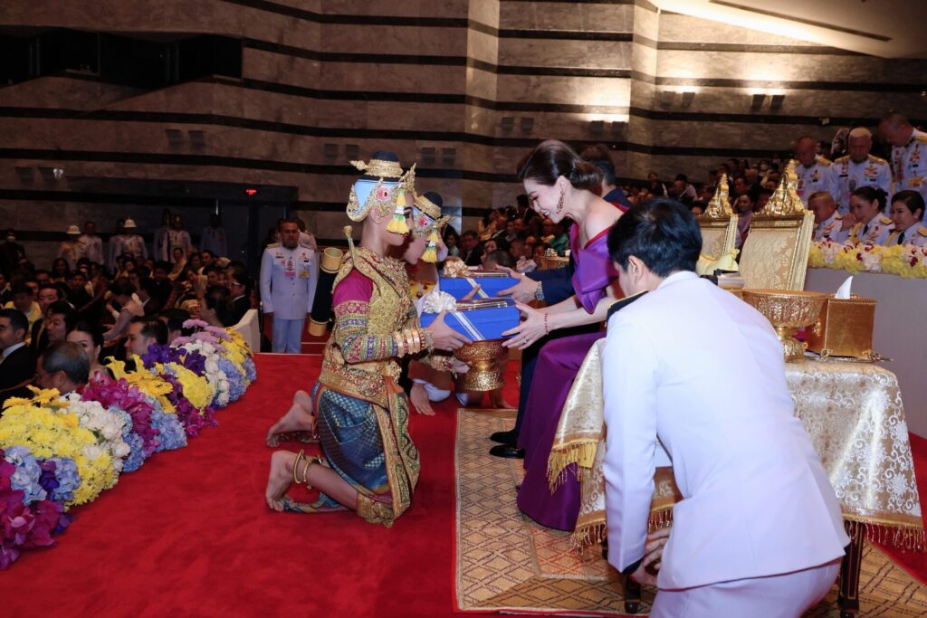 ในโอกาสนี้ พระบาทสมเด็จพระเจ้าอยู่หัว พระราชทานพระบรมราชวโรกาสให้ ผู้กำกับการแสดง ผู้ประพันธ์บท ผู้แทนผู้เชี่ยวชาญและครูฝึกซ้อมการแสดง ผู้กำกับศิลป์ ฉากและอุปกรณ์การแสดง และผู้แทนนักแสดง เฝ้าทูลละอองธุลีพระบาท รับพระราชทานช่อดอกไม้ ต่อจากนั้น พระราชทานพระบรมราชวโรกาสให้ พลอากาศเอก สถิตย์พงษ์ สุขวิมล รองประธานกรรมการและเลขาธิการมูลนิธิส่งเสริมศิลปาชีพฯ ประธานอำนวยการโขนมูลนิธิส่งเสริมศิลปาชีพฯ และคณะกรรมการดำเนินงานโขนมูลนิธิส่งเสริมศิลปาชีพฯ เฝ้าทูลละอองธุลีพระบาท น้อมเกล้าน้อมกระหม่อมถวายรูปหล่อพระอินทร์ทรงช้างเอราวัณ แด่พระบาทสมเด็จพระเจ้าอยู่หัว สมควรแก่เวลา จึงประทับรถยนต์พระที่นั่ง เสด็จพระราชดำเนินกลับ . -211 สำนักข่าวไทย