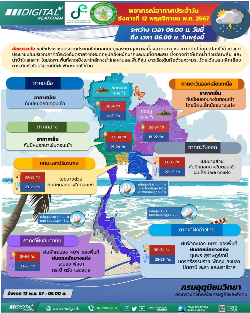 พยากรณ์อากาศรายภาค วันที่ 12 พ.ย.67