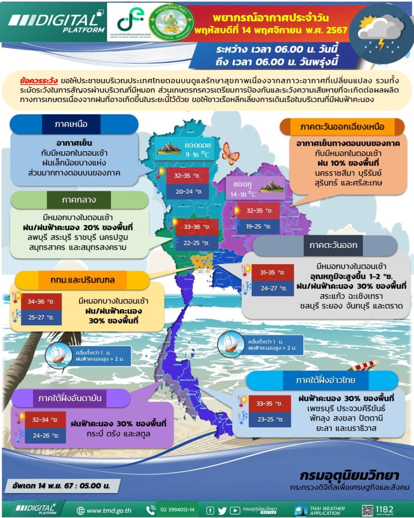 พยากรณ์อากาศรายภาค วันที่ 14 พ.ย.67