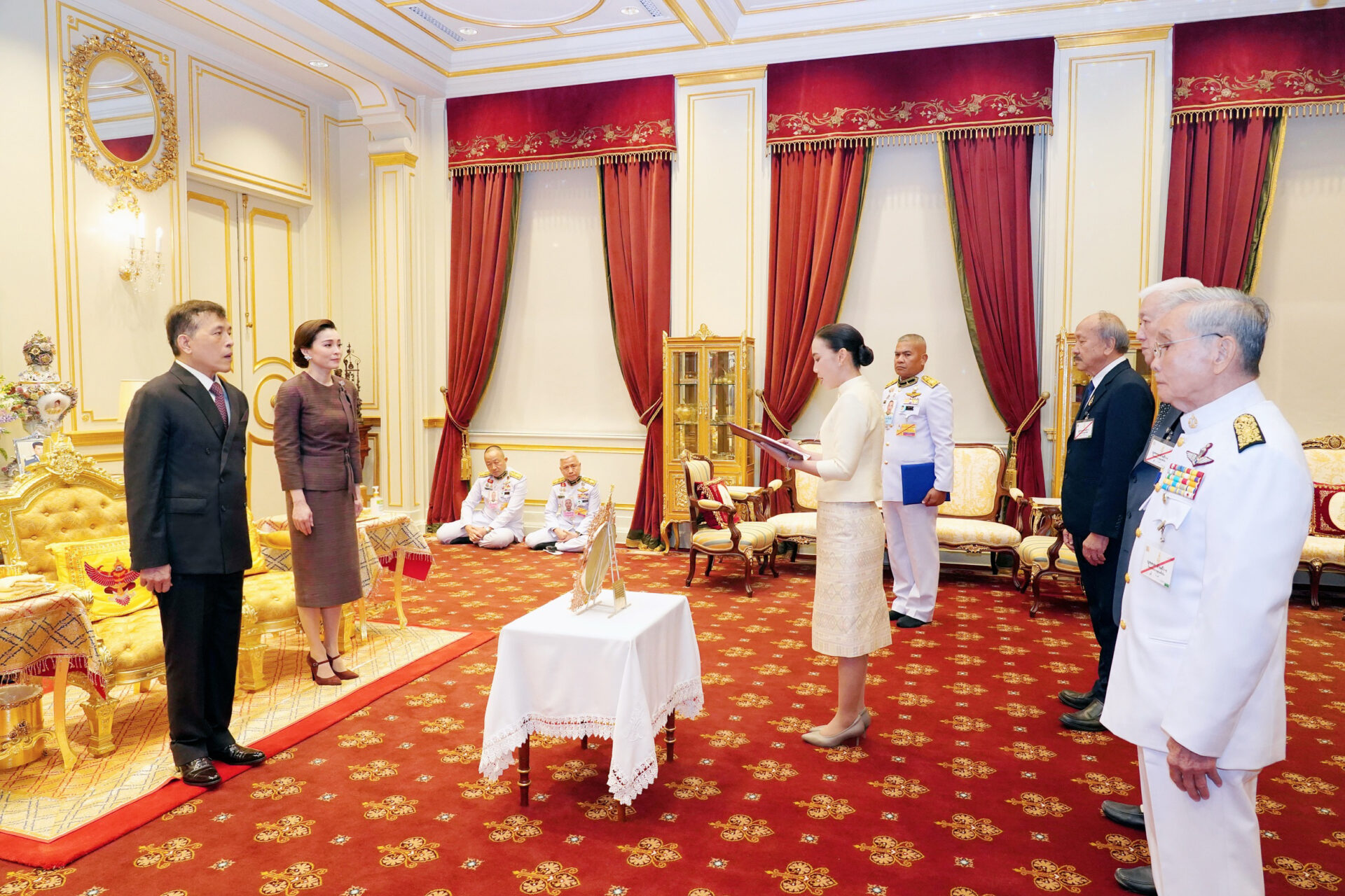 รองศาสตราจารย์ แพทย์หญิงชนิสา โชติพานิช พร้อมด้วยกรรมการมูลนิธิเพื่อพระมหาธาตุเจดีย์ภักดีประกาศ เฝ้าทูลละอองธุลีพระบาท น้อมเกล้าน้อมกระหม่อมถวายเหรียญพระบรมรูปพระบาทสมเด็จพระจุลจอมเกล้าเจ้าอยู่หัว (แผ่นบูชาทองคำ) พร้อมกรอบลายดอกกุหลาบ และแผ่นจารึกรายละเอียดเหรียญพระบรมรูป ฯ เพื่อเฉลิมพระเกียรติพระบาทสมเด็จพระเจ้าอยู่หัว เนื่องในโอกาสพระราชพิธีมหามงคลเฉลิมพระชนมพรรษา 6 รอบ 28 กรกฎาคม 2567. – สำนักข่าวไทย