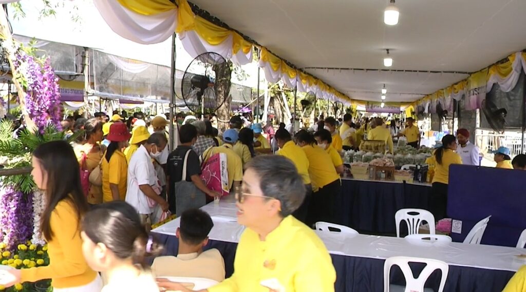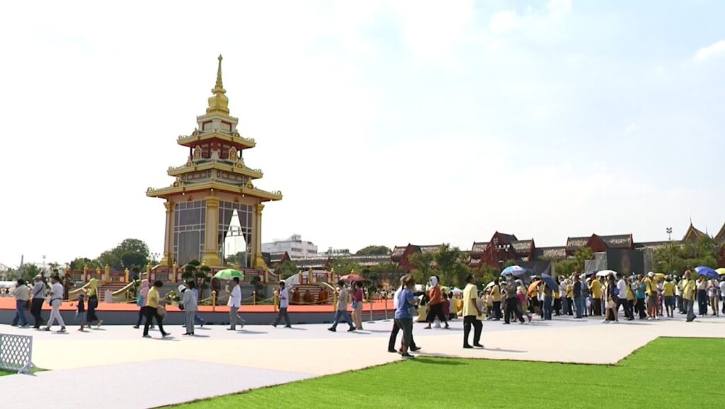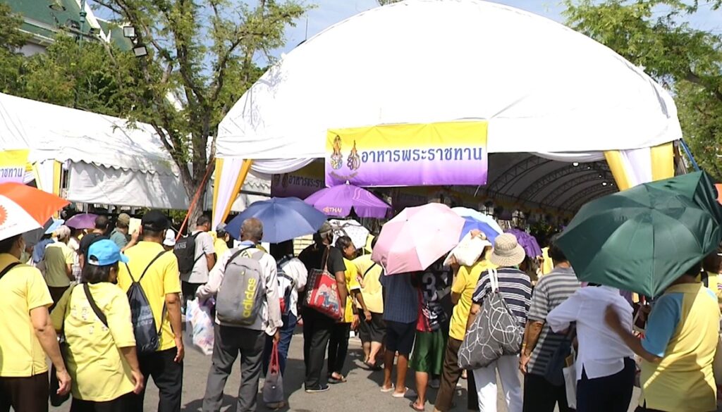 ขณะที่บรรยากาศโดยรอบ โดยเฉพาะที่เต็นท์บริเวณทางเข้า เนื่องจากวันนี้เป็นวันพ่อแห่งชาติ สำนักพระราชวัง นำอาหาร เครื่องดื่ม มาแจกจ่ายให้กับประชาชนได้รับประทานตั้งแต่เช้าไปจนถึงจบงานในวันนี้ คือเวลา 20.00 น. พบว่ามีประชาชนมาเข้าคิวรับอาหารต่อเนื่องตลอดทั้งวัน เมนูวันนี้มีหลากหลาย ทั้งอาหารคาว หวาน ที่ได้รับการสนับสนุนจากทางภาครัฐและเอกชน.-สำนักข่าวไทย