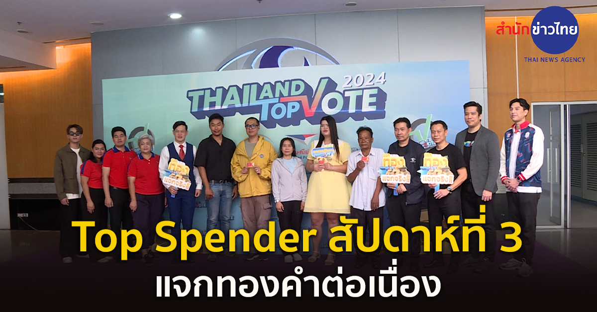 อสมท 12 ธ.ค.- แจกต่อเนื่อง อสมท ร่วมกับ ไปรษณีย์ไทย แจกทองคำ Top Spender สัปดาห์ที่ 3 ในโครงการ THAILAND TOP VOTE 2024