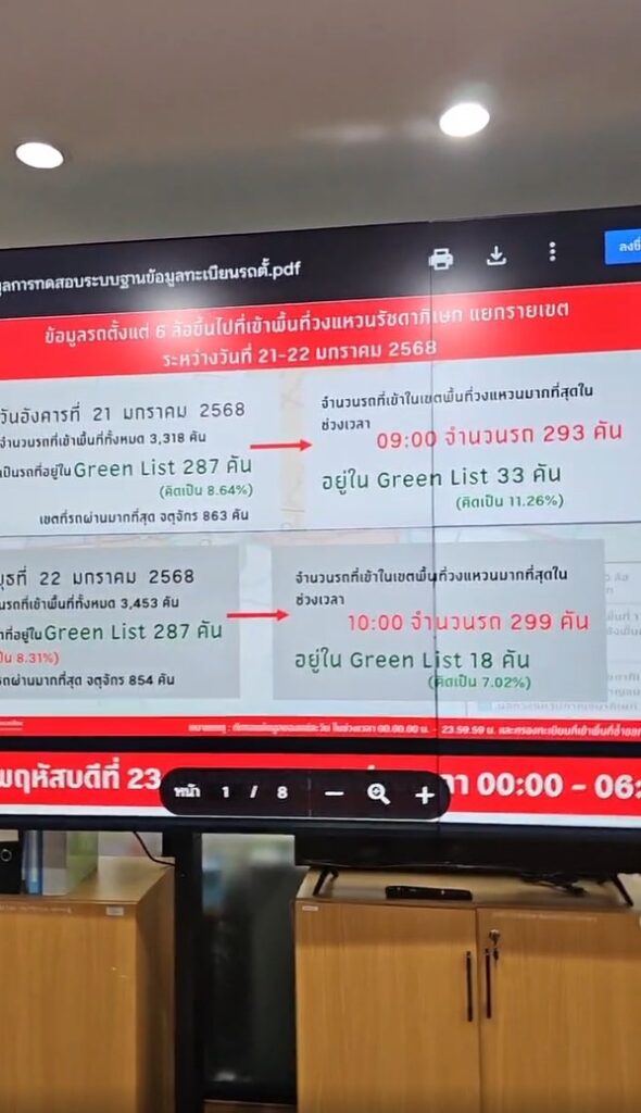 “เสียงที่บอกว่าเราไม่ได้ทำมาตรการเชิงรุกเรื่องฝุ่น อยากให้ดูข้อมูลและการทำงานเพราะเราทำมาตลอด ไม่ได้เพิ่งเริ่ม เรื่อง LEZ เราคุยกันมากว่าครึ่งปีเพื่อให้เกิดขึ้นและไม่มีที่ไหนในประเทศไทยที่ทำสิ่งนี้มาก่อน คืนวานนี้ หลังบังคับใช้ LEZ เที่ยงคืนถึงหกโมงเช้า กล้องที่เรามี เทคโนโลยีที่เราใช้ ตรวจพบว่ามีรถบรรทุก 6 ล้อขึ้นไป เข้ามาในเขตที่จำกัด 779 คัน ลงทะเบียนบัญชีสีเขียว 54 คัน หมายความว่า 725 คัน ต้องโดนปรับ สิ่งที่ต้องการสื่อสารคือเราเอาจริง” ผู้ว่าฯ กทม. กล่าว
