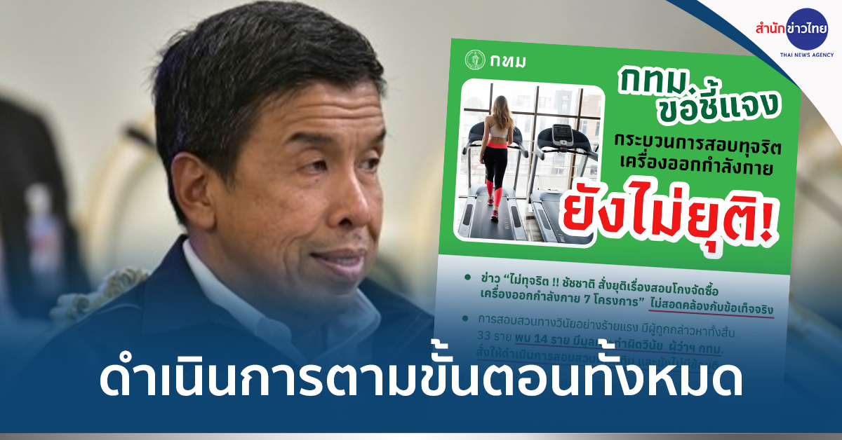 นายชัชชาติ สิทธิพันธุ์ ผู้ว่าราชการกรุงเทพมหานคร ชี้แจงกรณีข่าวบิดเบือน การตรวจสอบทุจริตการจัดซื้อเครื่องออกกำลังกาย ขอชี้แจงข่าวที่กล่าวว่าไปยุติการตรวจสอบทุจริตการจัดซื้อเครื่องออกกำลังกาย สำหรับศูนย์นันทนาการฯ และศูนย์กีฬา สำนักวัฒนธรรม กีฬา และการท่องเที่ยว (สวท.) จำนวน 7 โครงการ ว่า ไม่เป็นความจริง ไม่ได้ยุติ ทุกอย่างดำเนินการตามขั้นตอนทั้งหมด ซึ่งได้ดำเนินการมาตั้งแต่ปี 2567 โดยกระบวนการตรวจสอบมี 3 กระบวนการ คือ สอบสวนทางวินัยโดย กทม. เป็นกระบวนการสอบว่าที่ผ่านมาการจัดซื้อจัดจ้างเป็นไปตามระเบียบหรือไม่ แต่เราไม่มีอำนาจไปตรวจสอบเส้นทางการเงิน หรือแนวทางตามกระบวนการอาญา ซึ่งส่วนนี้เป็นหน้าที่ของ ป.ป.ช. ซึ่งร่วมมือกับ กทม. เป็นอย่างดี มีการตั้งคณะกรรมการตรวจสอบเรื่องนี้ และส่วนที่ 3 คือ การสอบสวนในฝั่ง สตง. ที่มีเจ้าหน้าที่ทำงานประจำร่วมกับ กทม. อยู่แล้ว