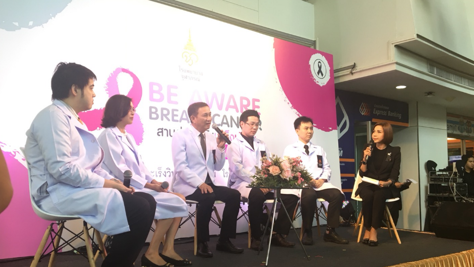 พล.ต.รศ.นพ.วิชัย วาสนศิริ ผอ.ศูนย์มะเร็งเต้านม รพ.จุฬาภรณ์ และนายกสมาคมมะเร็งเต้านม แห่งประเทศไทย กล่าวว่า ในช่วงเดือนตุลาคมนี้ ทางรพ.จุฬาภรณ์ได้จัดทำโครงการ BE AWARE BREAT CANCER สานต่อ..สู้ภัยมะเร็งเต้ามนม ทั้งการเผยแพร่ความรู้ และตรวจคัดกรองมะเร็งเต้านมฟรี พร้อมมอบชุดชั้นใน และเต้านมเทียมแก่ผู้สูญเสียเต้านม ทั้งนี้เพื่อถวายเป็นพระราชกุศลในโอกาส สมเด็จพระเจ้าลูกเธอ เจ้าฟ้าจุฬาภรณวลัยลักษณ์ อัครราชกุมารี ทรงพระเจริญพระชนมายุ 5 รอบ พร้อมกล่าวว่า สถานการณ์โรคมะเร็งเต้านมในคนไทย ปัจจุบัน พบผู้ป่วยมากขึ้น จากการใช้ชีวิตประจำวัน โดยกลุ่มเสี่ยงเป็นหญิงโสด ไม่มีลูก อายุมากขึ้น การรับประทานฮอร์โมน ทำให้สมดุลของฮอร์โมนเอสโตรเจนในร่างกาย ไม่คงที่ อย่างไรก็ตาม ขณะนี้การรักษามีความก้าวหน้า ทั้งการผ่าตัด ฉายแสง เคมีบำบัด รังสีรักษา โดยมะเร็งในระยะ 1-3 หากตรวจพบมีโอกาสหายขาด โดยเต้านมที่มีก้อนเนื้อขนาด 1 ซม. ควรผ่าตัดและฉายแสง และควรมีการตรวจเต้านมด้วยตนเองทุกเดือน