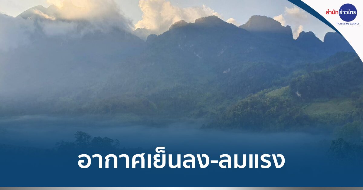 กรมอุตุนิยมวิทยา พยากรณ์อากาศ 24 ชั่วโมงข้างหน้า บริเวณความกดอากาศสูงหรือมวลอากาศเย็นกำลังค่อนข้างแรงปกคลุมประเทศไทยตอนบน ทำให้บริเวณดังกล่าวมีอากาศเย็นลงกับมีลมแรง ขอให้ประชาชนบริเวณประเทศไทยตอนบนดูแลรักษาสุขภาพจากสภาพอากาศที่เปลี่ยนแปลง