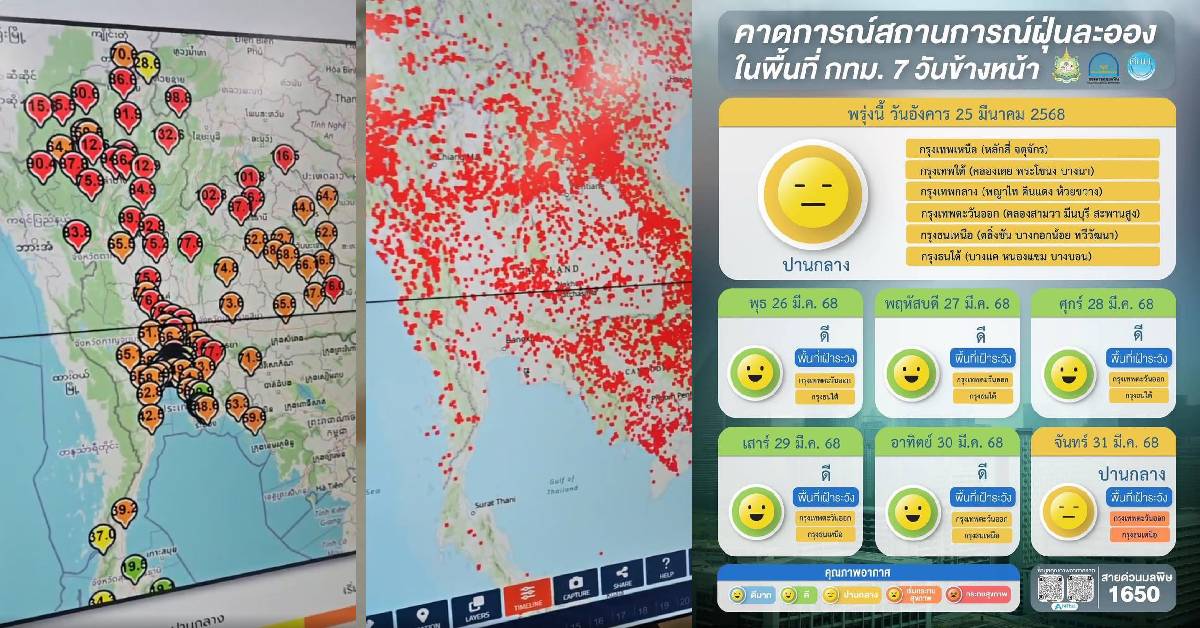 กรุงเทพฯ 24 มี.ค. – ฝุ่น PM2.5 พุ่งจากลมเปลี่ยนทิศ-จุดความร้อนประเทศเพื่อนบ้าน ผู้ว่าฯ กทม. ชี้ระบายอากาศดีขึ้นในสัปดาห์นี้