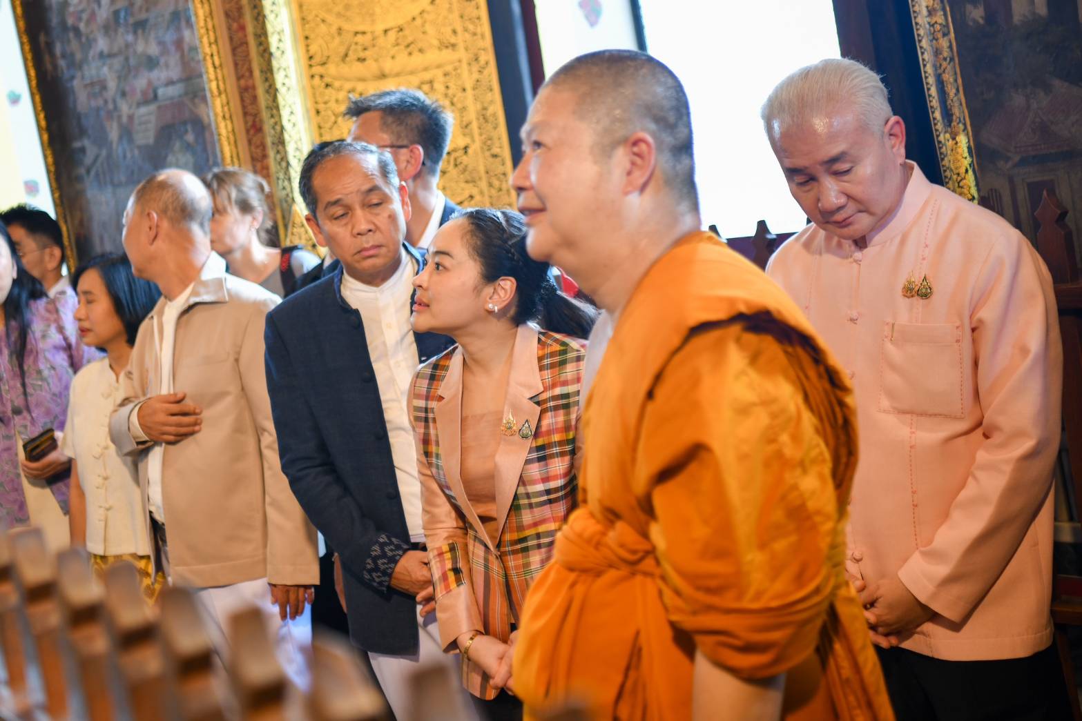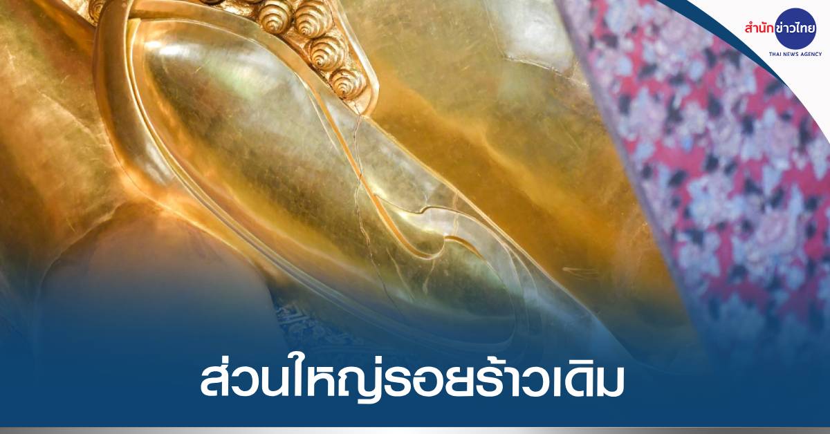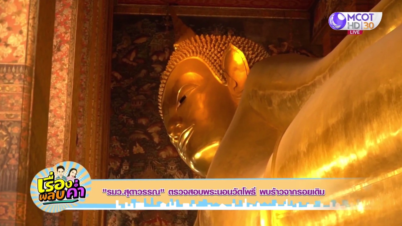 วันนี้ (1 เม.ย.68) นางสาวสุดาวรรณ หวังศุภกิจโกศล รัฐมนตรีว่าการกระทรวงวัฒนธรรม ลงพื้นที่ตรวจเยี่ยมพระนอน หรือพระพุทธไสยาสน์ ที่ประดิษฐานภายในพระวิหาร วัดพระเชตุพนวิมลมังคลาราม พร้อมด้วย นายพนมบุตร จันทรโชติ อธิบดีกรมศิลปากร และเจ้าหน้าที่ที่เกี่ยวข้อง หลังจากเหตุการณ์แผ่นดินไหวที่ประเทศเมียนมา มีกระแสข่าวว่า พระนอนมีรอยร้าว จึงได้มอบหมายให้กรมศิลปากรส่งผู้เชี่ยวชาญเข้าตรวจสอบ เมื่อวันที่ 29 มีนาคมที่ผ่านมา พบว่า ส่วนพระเศียร บริเวณพระศกและพระเกศา ไม่พบร่องรอยชำรุดเสียหาย แต่พบรอยร้าวตั้งแต่พระเนตร (ตา) เป็นแนวถึงพระปรางขวา (แก้ม) บริเวณพระกรรณขวา (หู) และบริเวณองค์พระพบความชำรุดของชั้นผิวเกิดการโป่งพอง บริเวณพระจุฑามาศ (ท้ายทอย) พบรอยร้าว ด้านหลังองค์พระพุทธไสยาสน์ พบรอยร้าวเพิ่มขึ้นในชั้นผิวที่ลงรักปิดทอง ส่วนฝ่าพระบาท ที่ตกแต่งด้วยลวดลายประดับมุขมงคล 108 มีสภาพสมบูรณ์ ไม่พบความชำรุด สภาพความชำรุดส่วนใหญ่ โดยเฉพาะรอยร้าวเป็นจุดที่ชำรุดเดิม เมื่อปี 2566 จากการตรวจสอบวันนี้ เห็นว่า พระนอนปัจจุบันมีความชำรุด ควรได้รับการอนุรักษ์ซ่อมแซม ตามหลักวิชาการที่เหมาะสมต่อไป
