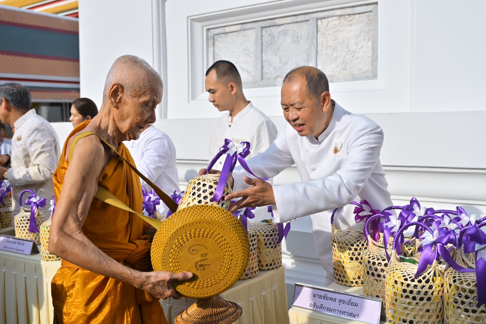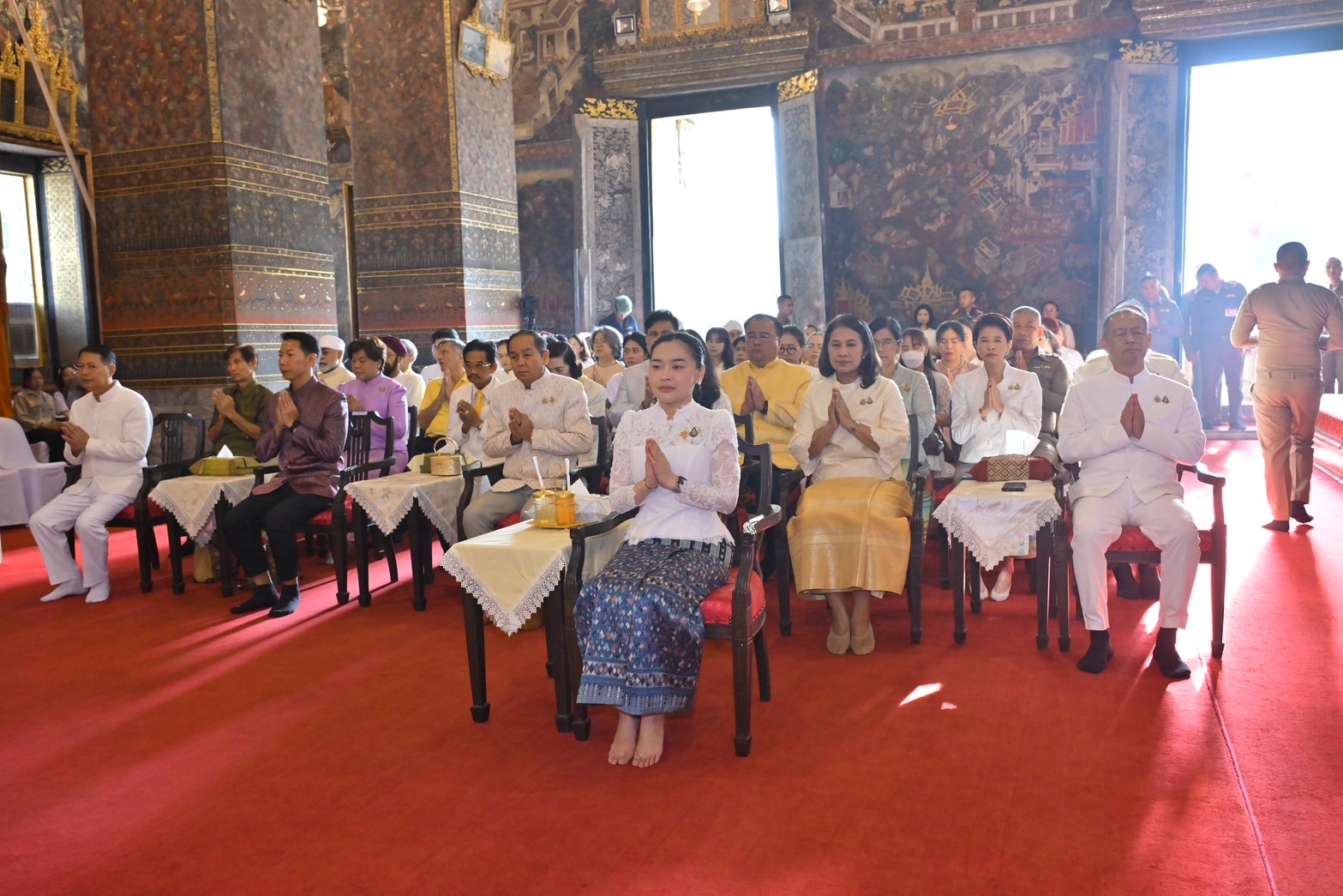 พระธรรมมงคลวชิโรภาส ผู้ช่วยเจ้าอาวาสวัดพระเชตุพนวิมลมังคลาราม เป็นประธานฝ่ายสงฆ์ นางสาวสุดาวรรณ หวังศุภกิจโกศล รัฐมนตรีว่าการกระทรวงวัฒนธรรม เป็นประธานฝ่ายฆราวาส ในพิธีบำเพ็ญกุศลอุทิศถวายสมเด็จพระบูรพมหากษัตริยาธิราช และพิธีตักบาตรพระสงฆ์ 99 รูป งาน “ใต้ร่มพระบารมี 243 ปี กรุงรัตนโกสินทร์” พร้อมด้วยนางสาวพลอย ธนิกุล ผู้ช่วยรัฐมนตรีประจำกระทรวงวัฒนธรรม นายพลภูมิ วิภัติภูมิประเทศ ผู้ช่วยรัฐมนตรีประจำกระทรวงวัฒนธรรมนายประสพ เรียงเงิน ปลัดกระทรวงวัฒนธรรม นายชัยพล สุขเอี่ยม อธิบดีกรมการศาสนา ผู้บริหารกระทรวงวัฒนธรรม และผู้แทนหน่วยงานต่างๆ เข้าร่วมงาน ณ พระอุโบสถ วัดพระเชตุพนวิมลมังคลาราม เขตพระนคร กรุงเทพมหานคร จากนั้นเวลา 09.20 น. มีพิธีบวงสรวงสิ่งศักดิ์สิทธิ์ศาลหลักเมือง เนื่องในกิจกรรม “ใต้ร่มพระบารมี 243 ปี กรุงรัตนโกสินทร์” โดยมีพิธีการสักการะพระพุทธรูป ณ หอพระพุทธรูป ใส่บาตรพระประจำวันเกิด