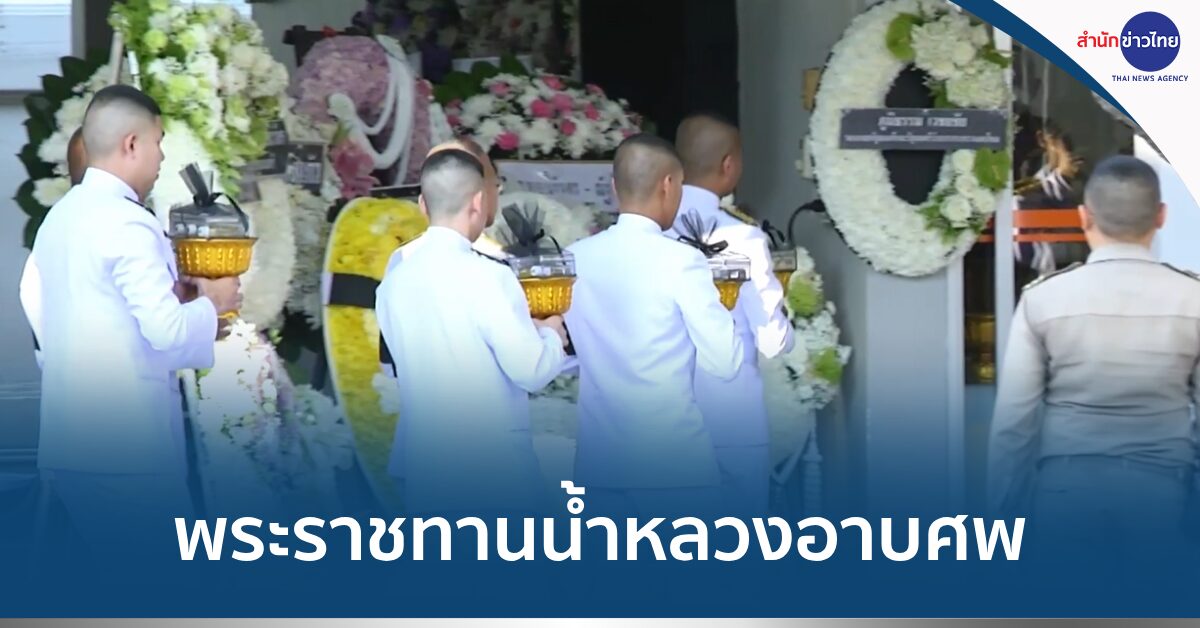 16.45 น. เจ้าพนักงานอัญเชิญกล่องน้ำหลวงพระราชทานเข้ามาภายในพิธี จากนั้น 17.00 น. พลตำรวจเอก กิตติ์รัฐ พันธุ์เพ็ชร์ ผู้บัญชาการตำรวจแห่งชาติ เป็นประธานในพิธีพระราชทานน้ำหลวงอาบศพตำรวจทั้ง 6 นาย