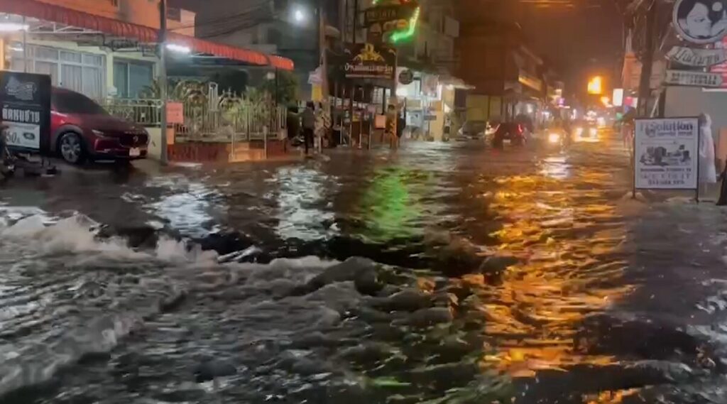 ทั้งนี้ เมืองพัทยาฝนตกลงมาอย่างต่อเนื่องนานกว่า 3 ชั่วโมง ส่งผลให้เมืองและพื้นที่ใกล้เคียงหลายจุด มีน้ำท่วมขังสูง รถยนต์รถเล็กไม่สามารถสัญจรได้ ขณะที่เจ้าหน้าที่ออกมาประชาสัมพันธ์ เพื่อไม่ให้รถยนต์ของประชาชนต้องขับลุยน้ำ ป้องกันความเสียหายและทรัพย์สินของประชาชนด้วย