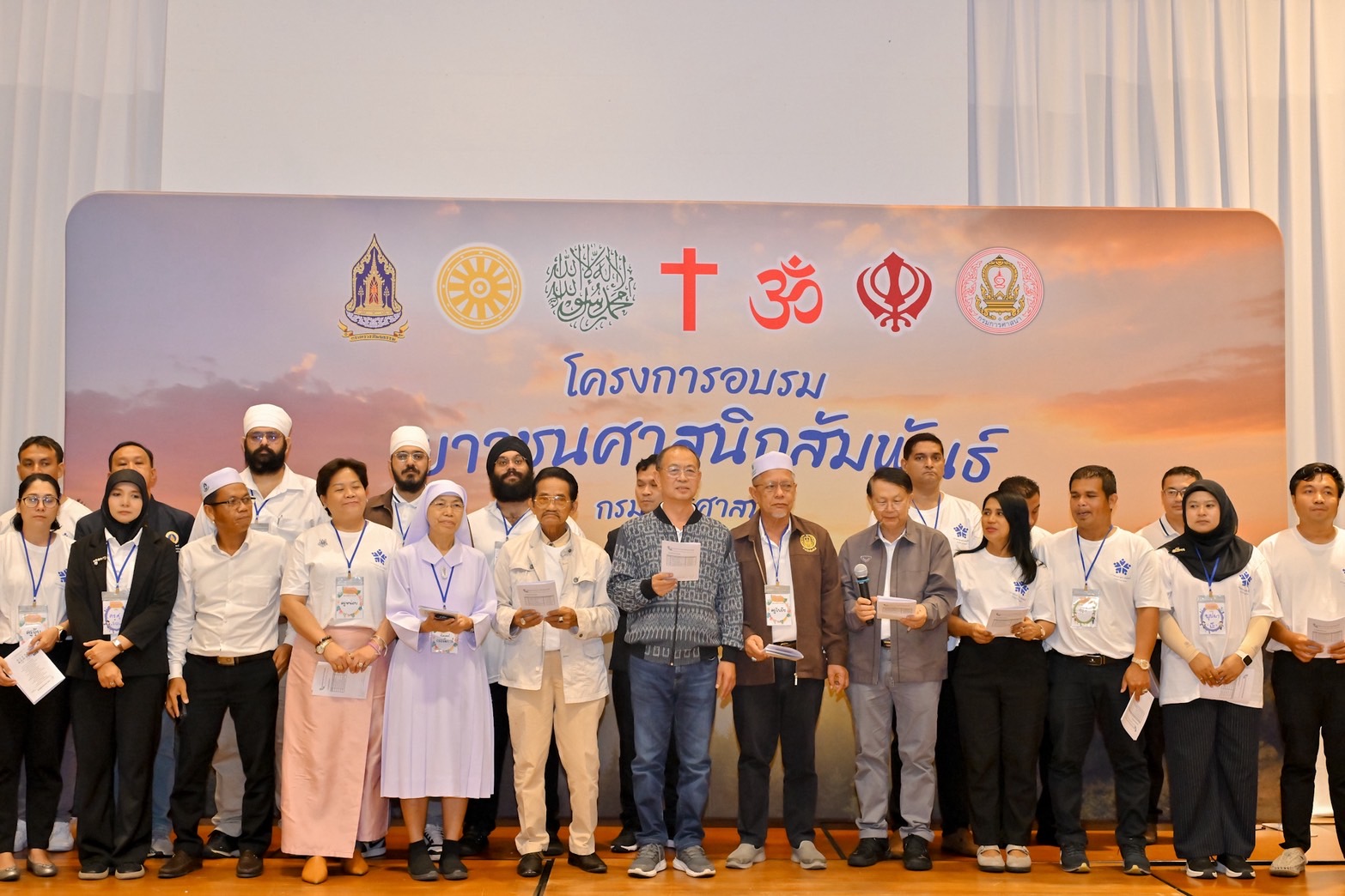 กรมการศาสนาร่วมมือจากองค์การทางศาสนาทั้ง 5 ศาสนา จัดโครงการอบรมเยาวชนศาสนิกสัมพันธ์ ณ โรงแรม Eco Hotel by Thammasat อำเภอบางละมุง จังหวัดชลบุรี โดยมีนายชัยพล สุขเอี่ยม อธิบดีกรมการศาสนา เป็นประธานในพิธี พร้อมทั้งผู้เข้าร่วมรวม 150 คน ประกอบด้วยเยาวชนจากส่วนกลางและจังหวัดในภาคใต้ รวมทั้งเยาวชนที่สมัครเข้าร่วมผ่านช่องทางออนไลน์ ครูพี่เลี้ยง ผู้แทนองค์การศาสนา เจ้าหน้าที่สำนักงานวัฒนธรรมจังหวัดในภาคใต้ และเจ้าหน้าที่จากกรมการศาสนา