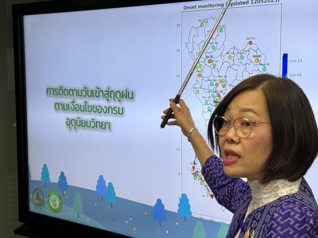 นางสาวสุกันยาณี ยะวิญชาญ อธิบดีกรมอุตุนิยมวิทยา เปิดเผยว่า กรมอุตุนิยมวิทยาคาดการณ์ปีนี้ ประเทศไทยจะเข้าสู่ฤดูฝนในวันที่ 15 พฤษภาคม 2568 ตามเกณฑ์ทางอุตุนิยมวิทยา 3 องค์ประกอบ ได้แก่ 1) ประเทศไทยตอนบนมีฝนตกมากกว่าร้อยละ 60 ของพื้นที่และต่อเนื่อง 2) ลมชั้นบนที่ระดับความสูงประมาณ 1.5 กิโลเมตร เปลี่ยนทิศทางเป็นลมตะวันตกเฉียงใต้ และ 3) ลมชั้นบนที่ระดับความสูงประมาณ 10 กิโลเมตร เปลี่ยนทิศเป็นลมฝ่ายตะวันออก