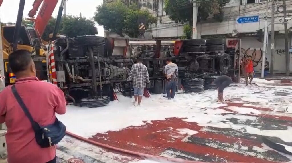 นายชัชชาติ สิทธิพันธุ์ ผู้ว่าราชการกรุงเทพมหานคร กล่าวถึงอุบัติเหตุเมื่อคืนเวลาประมาณ 00.24 น. มีรถน้ำมันพลิกคว่ำบริเวณถนนสุขสวัสดิ์ 24 เขตราษฎร์บูรณะ ทำให้มีน้ำมันเปรอะพื้นผิวจราจร ซึ่งเป็นน้ำมันเบนซินที่มีความไวไฟ กทม. จึงได้ใช้วิธีใช้กระสอบทราย ล้อมจุดเกิดเหตุเพื่อป้องกันน้ำมันไม่ให้ไหลไปบริเวณอื่น รวมถึงบล็อกท่อระบายน้ำบริเวณโดยรอบ เพื่อป้องกันน้ำมันไหลลงสู่ท่อระบายน้ำไปปนเปื้อนกับน้ำในท่อ โดยล่าสุดสามารถกู้รถให้ตั้งขึ้นได้แล้ว พร้อมถ่ายน้ำมันเบนซินของรถที่พลิกคว่ำไปสู่รถอีกคันที่มารองรับแล้ว อีกทั้งบริษัทผู้รับผิดชอบจะนำรถมาดูดน้ำมันที่อยู่บนพื้นและท่อระบายน้ำที่อาจมีผลกระทบต่อสิ่งแวดล้อมออกไปจากท่อด้วยเพื่อนำน้ำไปบำบัด รวมถึงเมื่อเช้าได้มีการอพยพผู้คนบริเวณใกล้เคียงไปประมาณ 100 คน เพื่อความปลอดภัย ซึ่งสถานการณ์ในภาพรวมเชื่อว่าไม่มีสิ่งใดที่ต้องกังวล ทุกอย่างอยู่ในการควบคุม และบ่ายนี้จะคลี่คลาย.-417-สำนักข่าวไทย