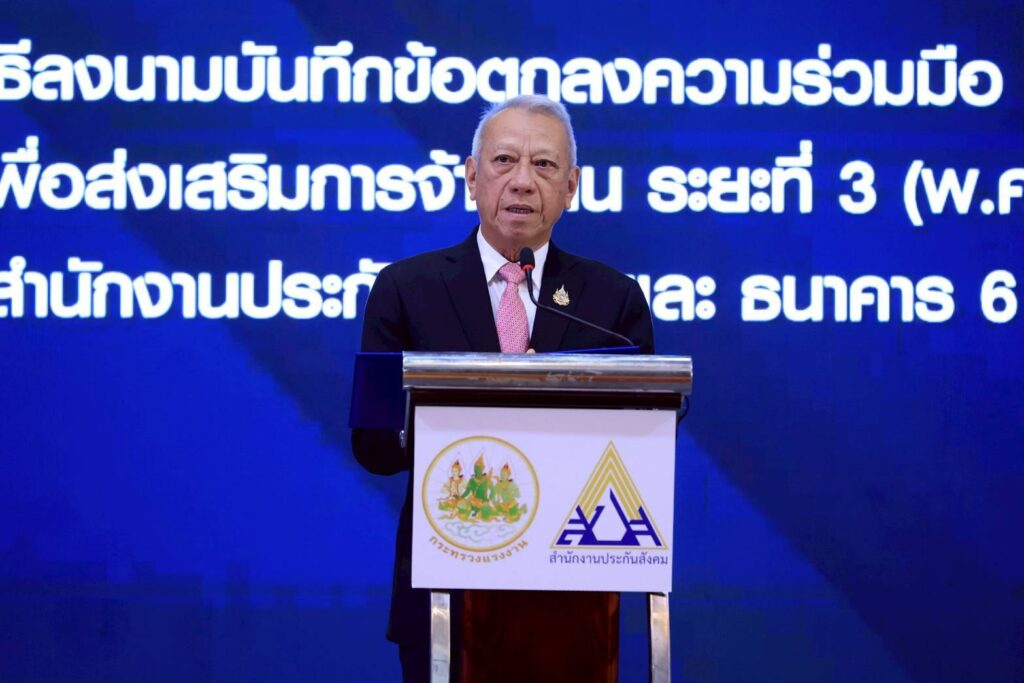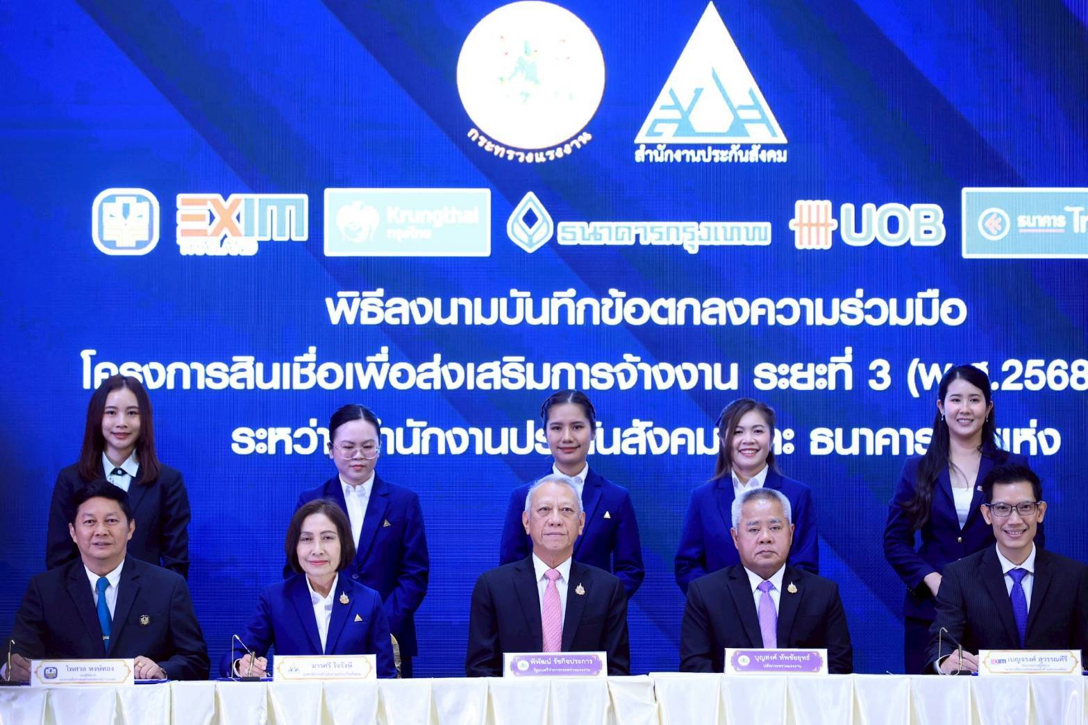 นายพิพัฒน์ รัชกิจประการ รัฐมนตรีว่าการกระทรวงแรงงาน เป็นประธานและสักขีพยานในพิธีลงนามบันทึกข้อตกลงความร่วมมือในโครงการสินเชื่อเพื่อส่งเสริมการจ้างงาน ระยะที่ 3 (พ.ศ. 2568 – 2569) ระหว่างสำนักงานประกันสังคม ร่วมมือกับธนาคารเพื่อการเกษตรและสหกรณ์การเกษตร ธนาคารเพื่อการส่งออกและนำเข้าแห่งประเทศไทย ธนาคารกรุงไทย จำกัด (มหาชน) ธนาคารกรุงเทพ จำกัด (มหาชน) ธนาคารยูโอบี จำกัด (มหาชน) และธนาคารไทยเครดิต จำกัด (มหาชน) โดยมีนายบุญสงค์ ทัพชัยยุทธ์ ปลัดกระทรวงแรงงาน นางมารศรี ใจรังษีเลขาธิการสำนักงานประกันสังคม คณะกรรมการสำนักงานประกันสังคม คณะผู้บริหารกระทรวงแรงงาน คณะผู้บริหารธนาคารที่เข้าร่วมโครงการทั้ง 6 แห่ง ผู้แทนสภาหอการค้าแห่งประเทศไทย ผู้แทนสมาพันธ์เอสเอ็มอีไทย แขกผู้มีเกียรติ สื่อมวลชน และเจ้าหน้าที่สำนักงานประกันสังคม ให้การต้อนรับ ณ ห้องประชุมวายุภักษ์ แกรนด์บอลรูม ชั้น 4 โรงแรมเซ็นทารา ไลฟ์ ศูนย์ราชการและคอนเวนชันเซ็นเตอร์ แจ้งวัฒนะ กรุงเทพมหานคร