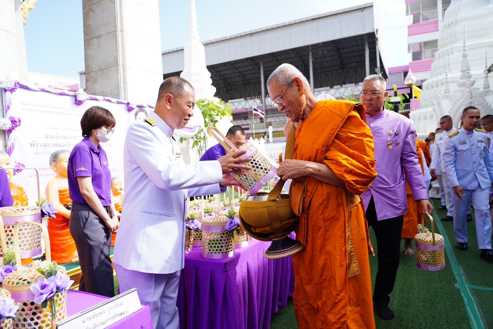 กรมการศาสนา กระทรวงวัฒนธรรม จัดพิธีเจริญพระพุทธมนต์และพิธีทำบุญตักบาตรพระภิกษุสงฆ์ สามเณร โดยมี พระเทพประสิทธิคุณ เจ้าอาวาสวัดระฆังโฆสิตาราม เป็นประธานฝ่ายสงฆ์ และ นางสาวสุดาวรรณ หวังศุภกิจโกศล รัฐมนตรีว่าการกระทรวงวัฒนธรรม มอบหมายให้นางสาวพลอย ธนิกุล ผู้ช่วยรัฐมนตรีประจำกระทรวงวัฒนธรรม เป็นประธานพิธี พร้อมด้วย นายประสพ เรียงเงิน ปลัดกระทรวงวัฒนธรรม นายชัยพล สุขเอี่ยม อธิบดีกรมการศาสนา ผู้บริหารกระทรวงวัฒนธรรม ผู้แทนหน่วยงาน องค์กรเครือข่ายทางพระพุทธศาสนา เข้าร่วม ณ พระอุโบสถวัดระฆังโฆสิตาราม เขตบางกอกน้อย กรุงเทพมหานคร