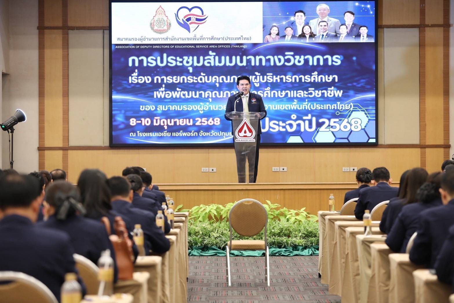 เมื่อวันจันทร์ที่ 9 มิถุนายน 2568 นายสุรศักดิ์ พันธ์เจริญวรกุล รัฐมนตรีช่วยว่าการกระทรวงศึกษาธิการ เป็นประธานเปิดการประชุมสัมมนาทางวิชาการ เรื่อง “การยกระดับคุณภาพผู้บริหารการศึกษา เพื่อพัฒนาคุณภาพการศึกษาและวิชาชีพ” ประจำปี 2568 ณ โรงแรมเอเชีย แอร์พอร์ท จังหวัดปทุมธานี โดยมี ผู้อำนวยการและรองผู้อำนวยการ สำนักงานเขตพื้นที่การศึกษา (ประเทศไทย) ร่วมให้การต้อนรับ