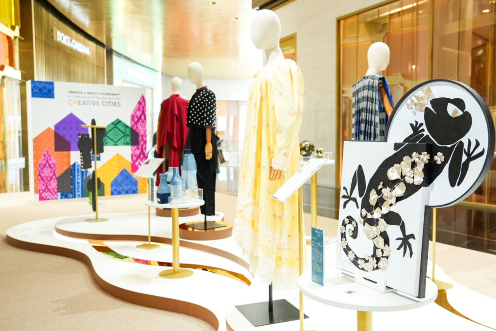 ความร่วมมือในครั้งนี้ ภายใต้แคมเปญ “UNESCO x SACIT x ICONCRAFT: A Celebration of Thai Artisans and Creative Cities” ที่เชื่อมโยงภูมิปัญญาท้องถิ่นจาก 7 จังหวัดเมืองสร้างสรรค์ในประเทศไทย เข้ากับงานหัตถศิลป์ของไทยผ่าน 14 ดีไซเนอร์ชั้นนำ โดยแบ่งเป็น 7 ดีไซเนอร์ที่เป็นผู้สืบสานภูมิปัญญาไทยภายใต้การสนับสนุนของสถาบันส่งเสริมศิลปหัตถกรรมไทย (องค์การมหาชน) หรือ SACIT และอีก 7 ดีไซเนอร์แถวหน้าของประเทศ ที่ ICONCRAFT ได้เชิญมาร่วมออกแบบคอลเลคชันพิเศษ ได้แก่ แบรนด์ “ATELIER PICHITA” ออกแบบชุดจากผ้าทอไทลื้อของ “กลุ่มผ้าทอไตลื้อ ครูดอกแก้ว” จังหวัดเชียงราย, แบรนด์ “THEATRE” ออกแบบชุดจากผ้าทรงดำของ “กลุ่มทอผ้าไทยทรงดำบ้านดอนมะนาว” จังหวัดสุพรรณบุรี, แบรนด์ “CHAI GOLD LABEL” ออกแบบชุดจากผ้าบาติกกลิ่นอายล้านนาของ “รักษ์บาติก” จังหวัดเชียงใหม่, แบรนด์ “HOOK’S BY PRAPAKAS” ออกแบบชุดจากผ้าบาติกวาดมือของ “กลุ่มยิ่งบาติกเพ้นท์” จังหวัดภูเก็ต, แบรนด์ “WISHARAWISH” ออกแบบชุดจากผ้าลายอย่างของ “ภูษาผ้าลายอย่าง” จังหวัดเพชรบุรี, แบรนด์ “PYVET” ออกแบบชุดจากผ้าจกขนเม่นของ “สุนทรีผ้าไทย” จังหวัดสุโขทัย และ แบรนด์ “JANESUDA” ออกแบบชุดจากผ้าบาติกสีสันสดใสของ “Marionsiam” (มารียองสยาม) กรุงเทพมหานคร