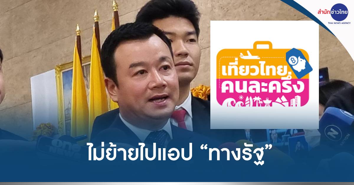 กทม. 4 ก.ค.-เปลี่ยนอีก รมว.ท่องเที่ยวฯ ย้ำลงทะเบียน “เที่ยวไทยคนละครึ่ง” ที่แอป Amazing Thailand ไม่ไปแอป “ทางรัฐ” แต่ขอปิดปรับปรุงระบบก่อน ใช้ได้เมื่อไหร่จะแจ้งให้ทราบ