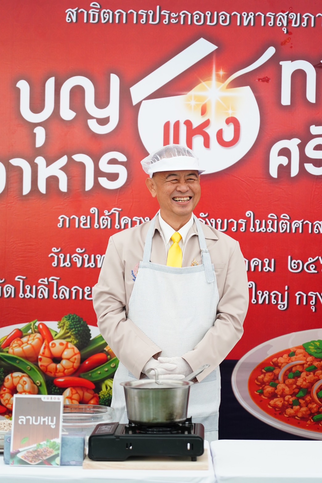 อธิบดีกรมการศาสนา กล่าวต่อไปว่า การจัดงาน “บุญแห่งทาน อาหารแห่งศรัทธา” มีกิจกรรมประกอบด้วย การบรรยายการประกอบอาหารสุขภาพ โดยเชฟพงศ์อนันต์ ศิริแสงไพรวัลย์และการสาธิตการประกอบอาหารสุขภาพจากหนังสืออาหารสุขภาพพระสงฆ์ 96 รายการ โดยอธิบดีกรมการศาสนา ผู้แทนหน่วยงานกรมอนามัย และคณะผู้บริหาร ร่วมสาธิตการประกอบอาหาร จำนวน 4 รายการ ได้แก่ ต้มไก่บ้านใบมะขามอ่อน โดยเมนูนี้มีใบมะขามอ่อนเป็นตัวทำให้อาหารมีรสเปรี้ยวแทนน้ำมะนาว มีวิตามินซี มีส่วนช่วยกระตุ้นระบบย่อยอาหาร และช่วยลดอาการท้องอืด ไก่บ้านซึ่งมีความเหนียวแน่นนุ่มแต่ชุ่มฉ่ำกว่าเนื้อไก่เลี้ยงในฟาร์ม เป็นอาหารที่มีไขมันต่ำ ย่อยง่าย ให้โปรตีนสูง มีส่วนช่วยในการซ่อมแซมร่างกายและดูแลกล้ามเนื้อ ลาบหมู เป็นอาหารที่ทำง่าย อร่อย มีสมุนไพรไทยหลากหลาย ชนิด เช่น ข่า ตะไคร้ ใบมะกรูด หอมแดง สะระแหน่ ซึ่งมีสารต้าน อนุมูลอิสระ และช่วยเรื่องระบบ ย่อยอาหาร ผัดผักสี่สหาย เป็นเมนูที่เพิ่มวิตามิน แร่ธาตุ และใยอาหารจากผักหลากหลายสี น้ำพริกอ่อง มีส่วนประกอบที่สำคัญคือ มะเขือเทศ มีส่วนช่วยช่วยต้านอนุมูลอิสระ สามารถรับประทานคู่กับผักลวกหลากชนิด และนำอาหารสุขภาพทั้ง 4 เมนูข้างต้น จัดถวายแด่พระสงฆ์และสามเณร รวมจำนวน 500 รูป