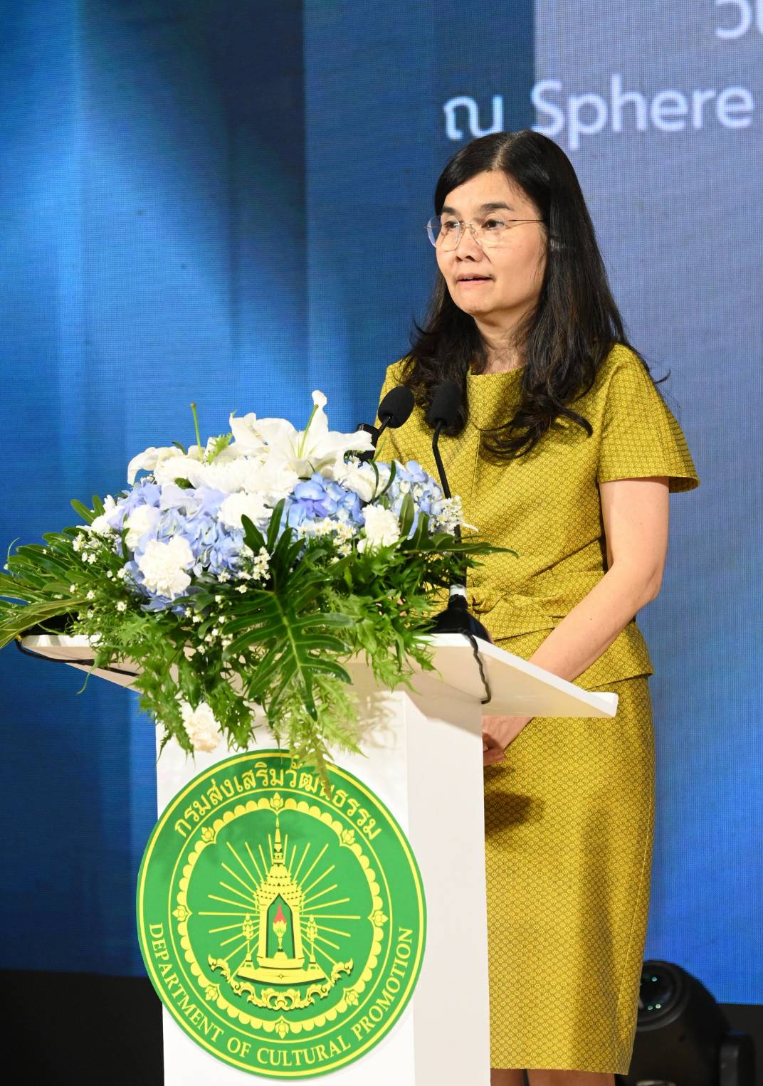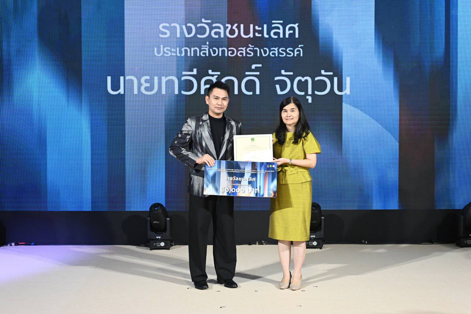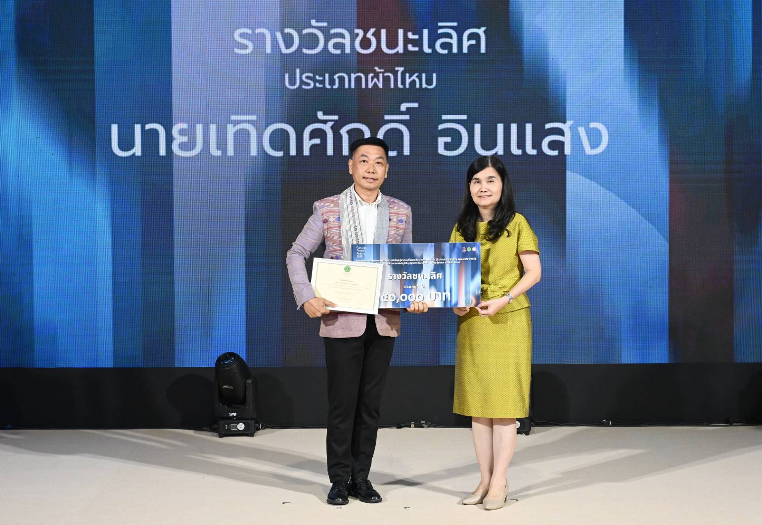 นางยุถิกา อิศรางกูร ณ อยุธยา อธิบดีกรมส่งเสริมวัฒนธรรม เป็นประธานในงานมอบรางวัลการประกวดออกแบบลายผ้าไทยสู่สากลเพื่อการต่อยอดและพัฒนา (Cultural Textile Awards 2025) ภายใต้โครงการพัฒนามรดกภูมิปัญญาทางวัฒนธรรมผ้าไทยสู่สากล ประจำปี 2568 ณ Sphere Gallery ชั้น M ศูนย์การค้า เอ็มสเฟียร์ กรุงเทพมหานคร โดยมี ดร. ปรารถนา คงสำราญ หัวหน้าโครงการพัฒนามรดกภูมิปัญญาทางวัฒนธรรมผ้าไทยสู่สากล ประจำปี 2568 นางสาวกิตติพร ใจบุญ ผู้เชี่ยวชาญด้านภูมิปัญญา ปฏิบัติหน้าที่ผู้อำนวยการกองมรดกภูมิปัญญาทางวัฒนธรรม นางสาวศิวพร ฉันทไกรวัฒน์ ผู้อำนวยการกลุ่มเผยแพร่และต่อยอดมรดกภูมิปัญญาทางวัฒนธรรม คณะกรรมการผู้ทรงคุณวุฒิ ผู้เชี่ยวชาญด้านมรดกภูมิปัญญาผ้าไทย ผู้ได้รับรางวัล สื่อมวลชน และแขกผู้มีเกียรติ เข้าร่วมงาน