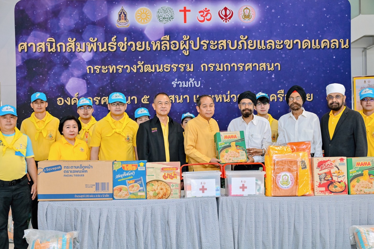 จากสถานการณ์น้ำท่วมในจังหวัดน่าน ทำให้บ้านเรือนพี่น้องประชาชน สถานที่ราชการ หน่วยงานต่าง ๆ สถานที่ท่องเที่ยวต่างๆ และศาสนสถานหลายแห่งได้รับความเสียหายอย่างหนัก และในสถานการณ์ความไม่สงบในบริเวณชายแดนไทย-กัมพูชา ในจังหวัดสุรินทร์ ได้สร้างความความสูญเสียแก่ครอบครัวผู้เสียชีวิต และประชาชนที่อยู่บริเวณพื้นที่ใกล้เคียง รวมถึงโบราณสถานต่างๆ ได้รับความเสียหายจำนวนมาก กระทรวงวัฒนธรรม โดยกรมการศาสนา ร่วมกับ วัด ได้แก่ วัดพระราม ๙ กาญจนาภิเษก วัดสุวรรณภูมิพุทธชยันตี วัดสะพาน วัดลาดปลาเค้า สถาบันวะสะฏียะห์ วัดวชิรธรรมสาธิตวรวิหาร วัดบรมสถล (วัดดอน) วัดหัวลำโพง วัดมหาธาตุยุวราชรังสฤษฎิ์ราชวรมหาวิหาร วัดเวฬุวนาราม วัดคลองเตยนอก วัดมหาธาตุยุวราชรังสฤษดิ์ และลานธรรมชุมชนอมรพันธ์ 9 องค์กรเครือข่ายทางศาสนาทั้ง 5 ศาสนา ทั้ง 15 องค์การ ได้แก่ องค์การพุทธศาสนิกสัมพันธ์แห่งโลก (พ.ส.ล.) พุทธสมาคมแห่งประเทศไทย ในพระบรมราชูปถัมภ์ ยุวพุทธิกสมาคมแห่งประเทศไทย ในพระบรมราชูปถัมภ์ เปรียญธรรมสมาคมแห่งประเทศไทย ในพระราชูปถัมภ์ฯ สำนักจุฬาราชมนตรี สภาประมุขบาทหลวงโรมันคาทอลิกแห่งประเทศไทย สภาคริสตจักรในประเทศไทย สหกิจคริสเตียนแห่งประเทศไทย มูลนิธิคริสตจักรคณะแบ๊บติสต์ (ฟอเรนมิชชั่นบอร์ด) มูลนิธิคริสตจักรเซเว่นธ์เดย์แอ๊ดเวนตีสแห่งประเทศไทย สำนักพราหมณ์พระราชครู ในสำนักพระราชวัง สมาคมฮินดูสมาช สมาคมฮินดูธรรมสภา สมาคมศรีคุรุสิงห์สภา สมาคมนามธารีสังคัตแห่งประเทศไทย รวมถึงหน่วยงานเครือข่าย และผู้มีจิตศรัทธาอื่นๆ ร่วมบริจาคเงิน เครื่องอุปโภคบริโภค และของใช้ที่จำเป็น เพื่อช่วยเหลือผู้ประสบอุทกภัยและผู้ได้รับผลกระทบจากเหตุการณ์ความไม่สงบบริเวณชายแดนไทย-กัมพูชา