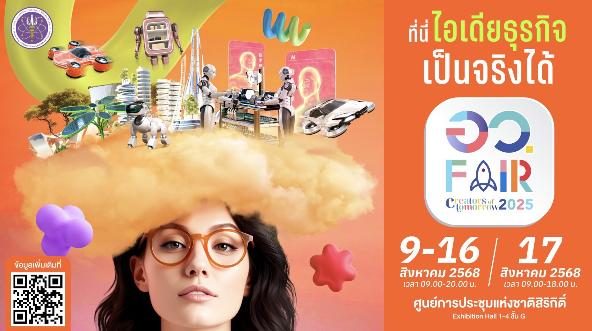 ปีนี้ “อว.แฟร์ 2025” ได้ยกระดับความยิ่งใหญ่ด้วยการผนึกกำลังกับงานมหกรรมวิทยาศาสตร์และเทคโนโลยีแห่งชาติ สัมผัสพลังของวิทยาศาสตร์ที่ขับเคลื่อนชุมชนอย่างยั่งยืนแบบ “ลงมือทำจริง คิดจริง สนุกจริง” เปิดมุมมองใหม่และสร้างสังคมแห่งการเรียนรู้ พร้อมเตรียมตัวรับมือกับการเปลี่ยนแปลงในโลกอนาคตอย่างมั่นใจ