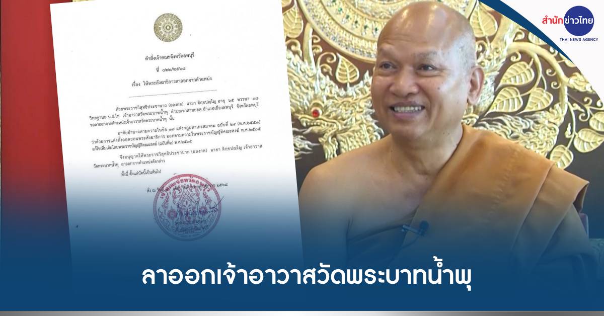 อาศัยอำนาจตามความในข้อ 37 แห่งกฎมหาเถรสมาคม ฉบับที่ 24 (พ.ศ.2551) ว่าด้วยการแต่งตั้งถอดถอนพระสังฆาธิการ ออกตามความในพ.ร.บ.คณะสงฆ์ พ.ศ.2505 แก้ไขเพิ่มเติมโดยพ.ร.บ.คณะสงฆ์ (ฉบับที่2) พ.ศ.2535 จึงอนุญาตให้พระราชวิสุทธิประชานาถ เจ้าอาวาสวัดพระบาทน้ำพุ ลาออกจากตำแหน่งดังกล่าว ทั้งนี้ ตั้งแต่บัดนี้เป็นต้นไป สั่ง ณ วันที่ 19 ส.ค.2568.-สำนักข่าวไทย