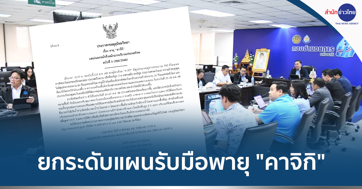 นายประเสริฐ จันทรรวงทอง รองนายกรัฐมนตรี และรัฐมนตรีว่าการกระทรวงดิจิทัลเพื่อเศรษฐกิจและสังคม ในฐานะประธานกรรมการทรัพยากรน้ำแห่งชาติ (กนช.) เผย รัฐบาลเตรียมรับมือพายุโซนร้อน “คาจิกิ (KAJIKI)” เต็มกำลัง หลังพายุดีเปรสชันในทะเลจีนใต้ตอนบนทวีกำลังแรงขึ้น และมีทิศทางเคลื่อนตัวไปขึ้นฝั่งประเทศเวียดนามตอนบนและ สปป.ลาว ช่วงวันที่ 25–26 สิงหาคมนี้