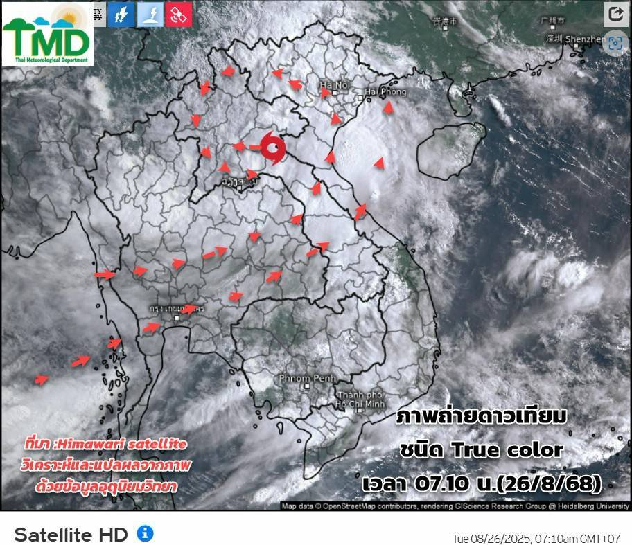 กรุงเทพฯ 26 ส.ค. – กรมอุตุนิยมวิทยาระบุพายุไต้ฝุ่น “คาจิกิ” อ่อนกำลังลงเป็นพายุโซนร้อนแล้ว ขณะนี้มีศูนย์กลางบริเวณประเทศลาว คาดอ่อนกำลังลงเป็นพายุดีเปรสชันและกลายเป็นหย่อมความกดอากาศต่ำกำลังแรง เมื่อศูนย์กลางเคลื่อนเข้าปกคลุมภาคเหนือของไทย โดยเข้าทางจังหวัดน่าน ทุกภาคจะมีฝนตกเพิ่ม เฝ้าระวังฝนตกหนักถึงหนักมากบางแห่ง
