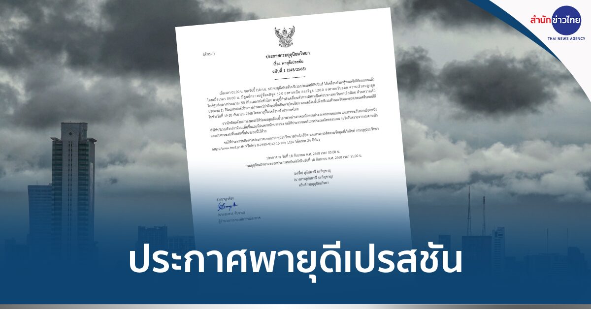 ประกาศกรมอุตุนิยมวิทยา เรื่อง พายุดีเปรสชัน ฉบับที่ 1 (245/2568)