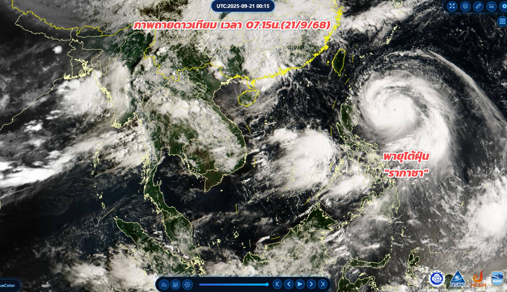ปัจจุบัน พายุไต้ฝุ่น “รากาซา” (RAGASA) ยังคงเคลื่อนตัวอยู่บริเวณมหาสมุทรแปซิฟิกตะวันตก แม้ไม่เคลื่อนเข้าสู่ไทยโดยตรง แต่ส่งอิทธิพลต่อสภาพอากาศในประเทศ ทำให้ร่องมรสุมพาดผ่านภาคเหนือตอนล่าง ภาคกลางตอนบน และภาคตะวันออกเฉียงเหนือตอนบน ขณะเดียวกันมรสุมตะวันตกเฉียงใต้ที่พัดปกคลุมทะเลอันดามัน ประเทศไทย และอ่าวไทยก็มีกำลังแรงขึ้น ส่งผลให้หลายพื้นที่มีฝนเพิ่มขึ้น และบางแห่งมีฝนตกหนักถึงหนักมาก โดยเฉพาะในช่วงวันที่ 21–27 กันยายน 2568