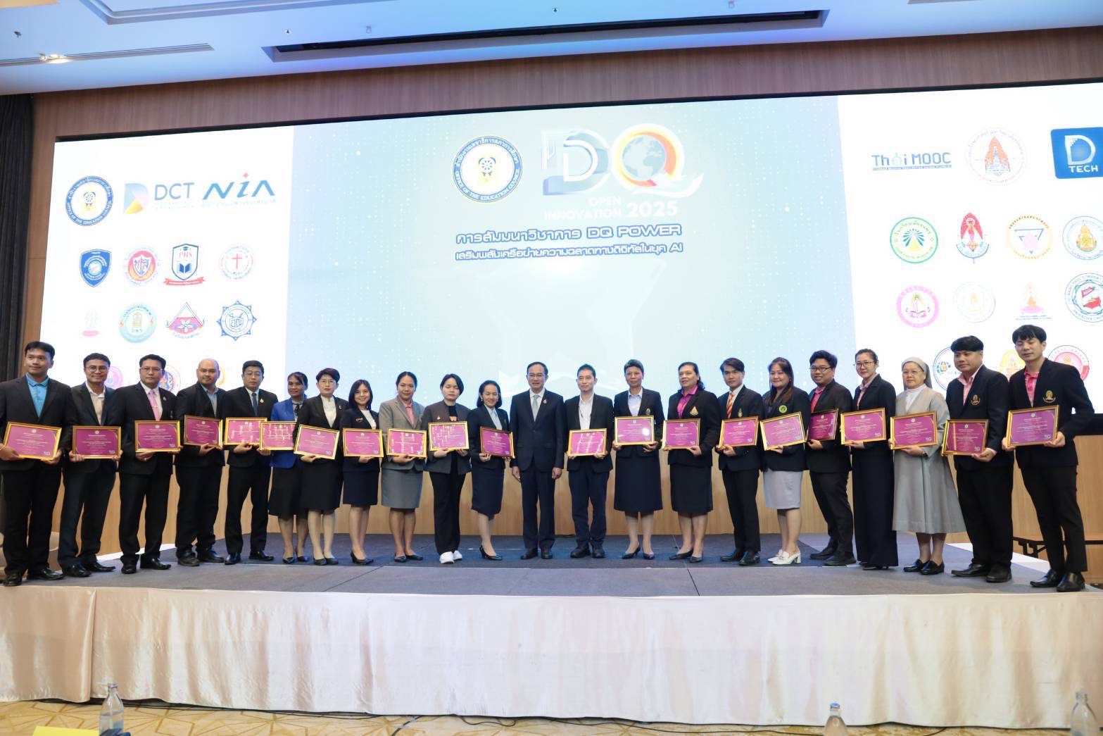 รศ.ดร.ประวิต เอราวรรณ์ เลขาธิการสภาการศึกษา เป็นประธานและมอบเกียรติบัตรแก่สถานศึกษาที่เข้าร่วมกิจกรรม การพัฒนานวัตกรรม แบบเปิดเพื่อพัฒนาความฉลาดทางดิจิทัล (DQ Open Innovation 2025) ในงานการประชุมสัมมนาวิชาการ “DQ Power เสริมพลังเครือข่ายความฉลาดทางดิจิทัลในยุค AI” พร้อมกล่าวว่า ปัจจุบันการปรับตัวในยุคดิจิทัลใช้ชีวิตในโลกสองใบ คือ โลกกายภาพ และ โลกดิจิทัล โดยเฉพาะเด็กที่ใช้เวลาในโลกดิจิทัลมากขึ้น ดังนั้น การศึกษาจึงต้องเน้นการสร้าง ความสมดุลในการใช้ชีวิต มนุษย์เป็นผู้สร้างไม่ใช่มนุษย์ผู้เสพ เทคโนโลยีจะทำให้เกิดความแตกต่างระหว่างผู้ที่สร้างนวัตกรรมกับผู้ที่เพียงแค่ใช้งาน การศึกษาจึงควรส่งเสริมให้เด็กมีทักษะและทัศนคติของ “มนุษย์ผู้สร้าง” เพื่อให้สามารถพัฒนาเทคโนโลยีใหม่ ๆ ได้ ระบบการศึกษาจึงต้องได้รับการปรับปรุงเพื่อรับมือกับโลกที่เปลี่ยนแปลงอย่างรวดเร็ว ประเด็นสำคัญคือ การเปิดกว้างและยืดหยุ่นมากขึ้น เพื่อรองรับความสามารถที่หลากหลายของเด็กการพัฒนาระบบการประเมินที่สอดคล้องกับความต้องการในอนาคต มีการจัดการทรัพยากร จัดสรรงบประมาณทางการศึกษาอย่างมีประสิทธิภาพและตรงจุด การผลิตครูดึงคนรุ่นใหม่ที่มีความรู้ความสามารถเข้ามาเป็นครู เพื่อพัฒนาศักยภาพของเด็กได้อย่างเต็มที่