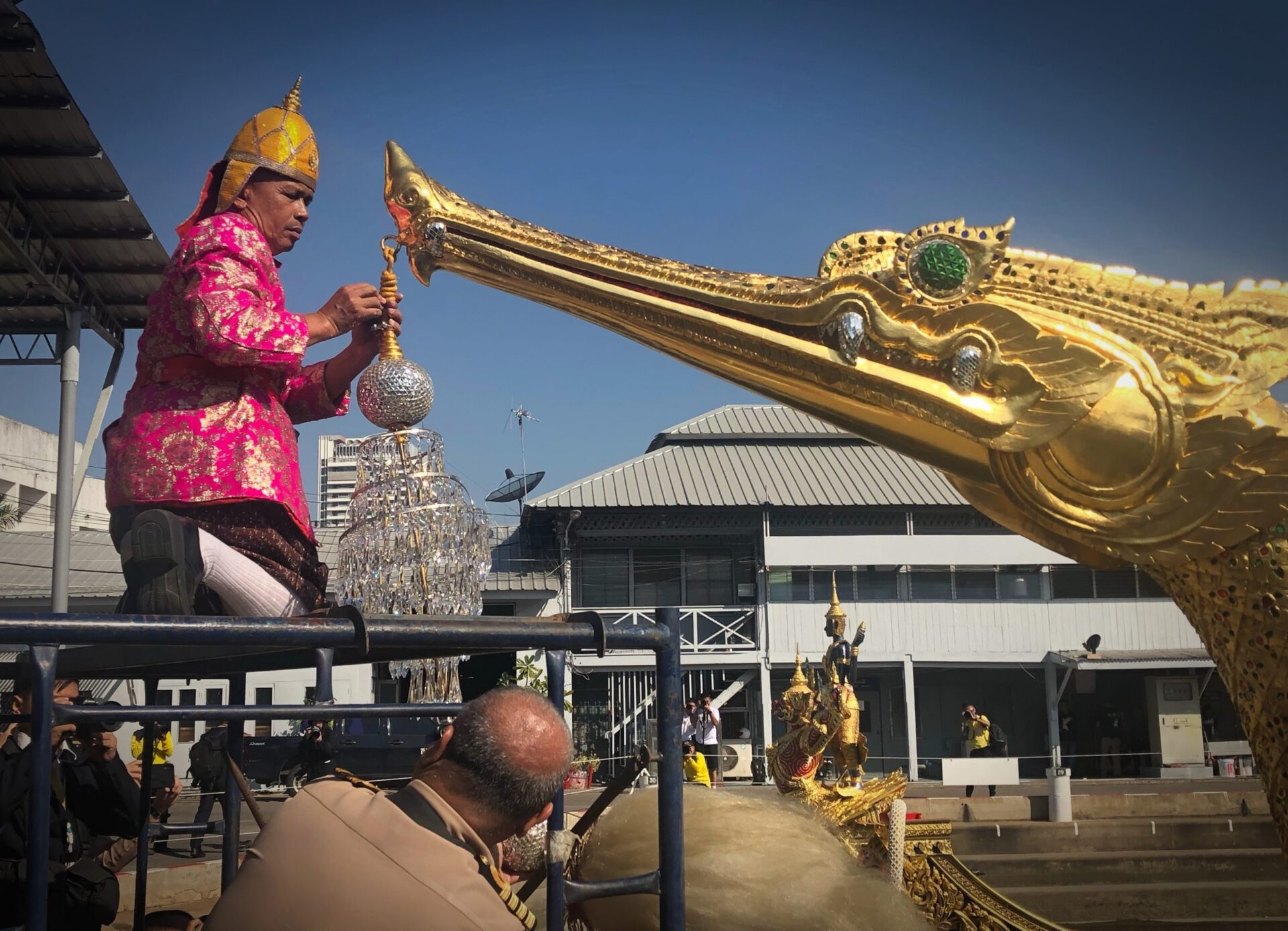 กรมอู่ทหารเรือ. 7 ธ.ค.- เจ้าหน้าที่ประดับภู่ห้อยจามรี เรือสุพรรณหงส์. และเครื่องสูงประดับเรือพระราขพิธี เพื่อซ้อมใหญ่เสมือนจริง ทั้งขบวนพยุหยาตราทางชลมารค และการฝึกซ้อมริ้วขบวนราบ