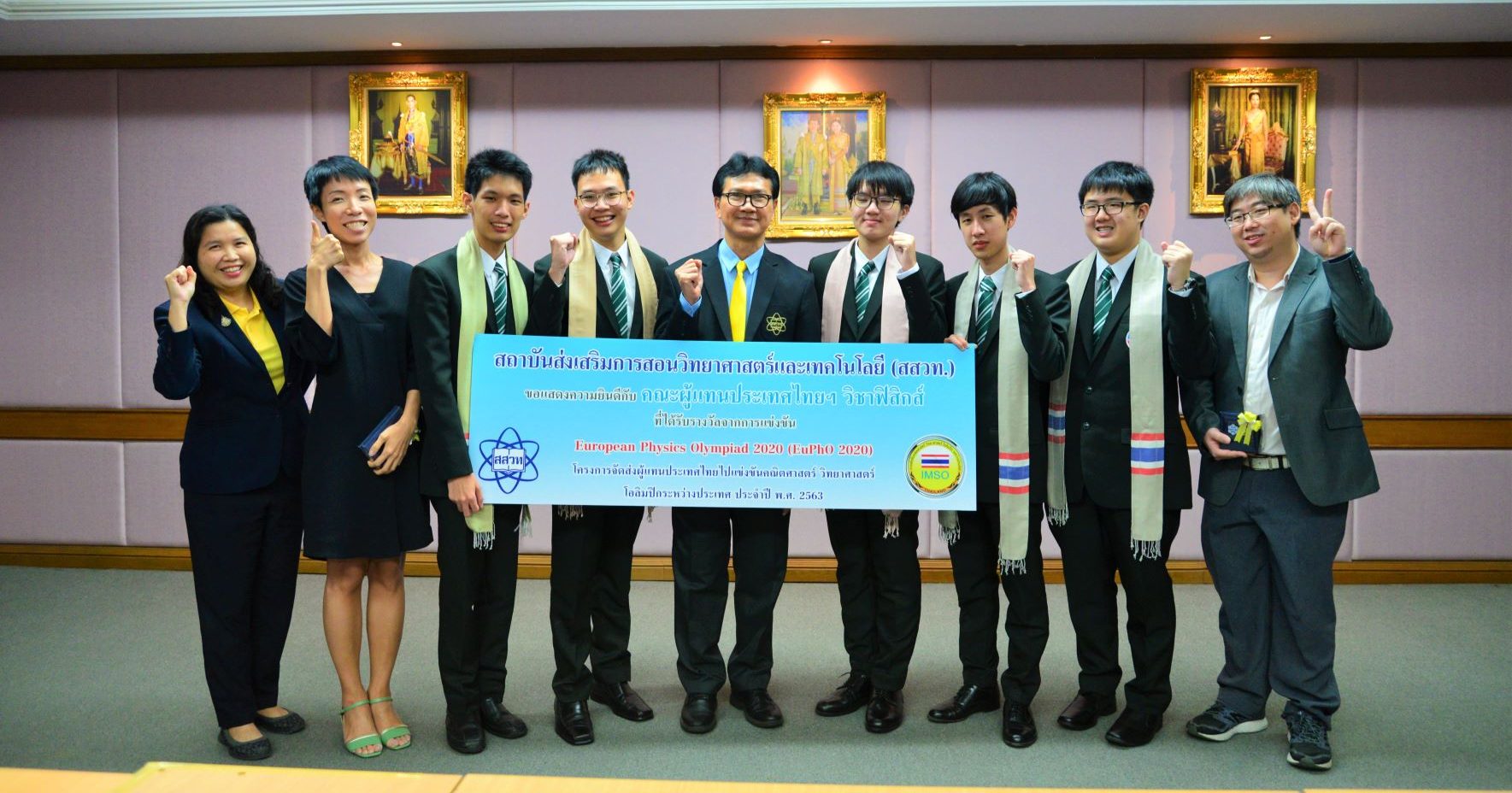 นายพรชัย อินทร์ฉาย รองผู้อำนวยสถาบันส่งเสริมการสอนวิทยาศาสตร์และเทคโนโลยี (สสวท.) พร้อมคณะผู้บริหาร แสดงความยินดีและชื่นชมผู้แทนประเทศไทยที่เข้าร่วมการแข่งขันฟิสิกส์โอลิมปิกระหว่างประเทศ ระดับทวีปยุโรป (European Physics Olympiad 2020 ; EuPhO 2020)