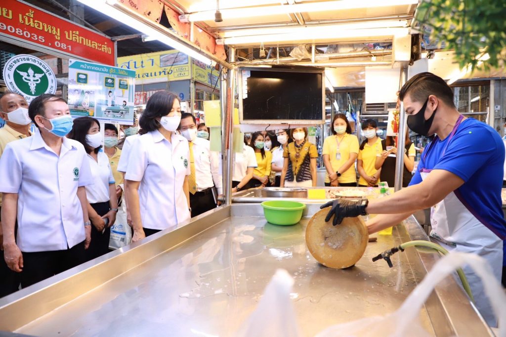 รวมถึงกำหนดมาตรการเพื่อลดความแออัด จัดให้มีการทำความสะอาด บริเวณพื้นตลาด แผงจำหน่ายอาหารสดหรือแผงชำแหละเนื้อสัตว์สด ด้วยน้ำยาทำความสะอาดเป็นประจำทุกวันและล้างตลาด ตามหลักการสุขาภิบาลอย่างน้อยสัปดาห์ละครั้ง อาหารปรุงสำเร็จมีการปกปิดอาหารมิดชิด จัดเก็บสูงจากพื้น อย่างน้อย 60 เซนติเมตร ใช้อุปกรณ์สำหรับการหยิบจับหรือตักอาหาร มีการทำความสะอาดห้องน้ำ ห้องส้วม ทุก 2 ชั่วโมง และมีการจัดการขยะอย่างถูกวิธีทุกวัน