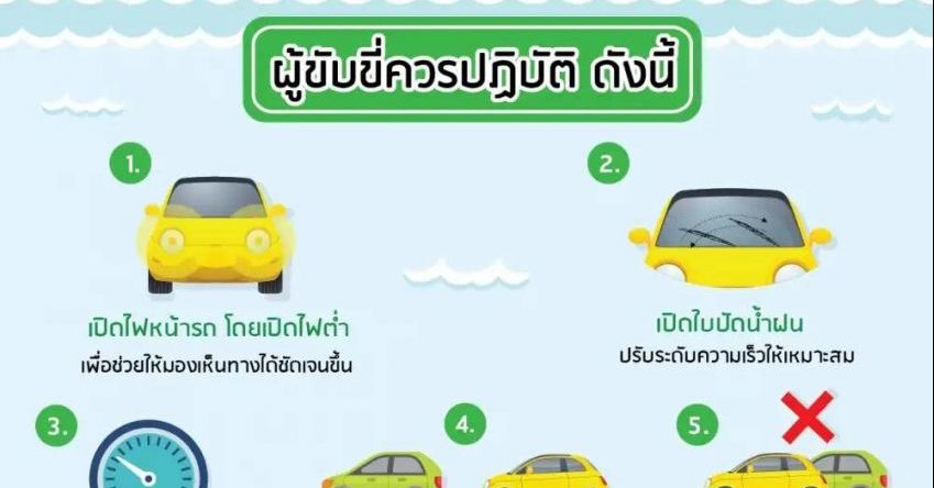 ทั้งนี้ ขอแนะนำผู้ขับขี่ควรปฏิบัติ 7 วิธีขับขี่ให้ปลอดภัยในช่วงฝนตกและน้ำท่วมขัง ดังนี้ 1.เปิดไฟหน้ารถเสมอ โดยเปิดไฟต่ำ เพื่อช่วยให้มองเห็นสิ่งต่างๆ บนถนนได้ชัดเจนขึ้น และให้รถคันอื่นมองเห็นรถของเราได้จากระยะไกล 2.เปิดใบปัดน้ำฝน โดยปรับระดับความเร็วของใบปัดน้ำฝนให้สัมพันธ์กับความแรงและปริมาณของฝนที่ตกลงมา 3.ลดความเร็ว ใช้ความเร็วที่เหมาะสม เพื่อเพิ่มความระมัดระวังให้มากเป็นพิเศษ 4.ให้ทิ้งระยะห่างจากรถคันหน้า เพราะสภาพถนนที่เปียกลื่น ต้องใช้ระยะทางในการหยุดรถเพิ่มขึ้น 5.หลีกเลี่ยงการแซง แต่หากจำเป็นควรประเมินสถานการณ์ให้ดีก่อนแซง 6.รถลื่นไถลหรือเหินน้ำ ห้ามเหยียบเบรกจนล้อหยุดหมุนในทันที เพราะอาจทำให้รถพลิกคว่ำได้ ควรลดความเร็ว ใช้เกียร์ต่ำ จนกว่ารถจะทรงตัวได้ แล้วจึงค่อยเหยียบเบรกเพื่อหยุดรถ และ 7.เมื่อต้องขับรถผ่านน้ำท่วมขัง ให้หยุดประเมินสถานการณ์ หากระดับน้ำลึกสูงกว่าขอบประตูรถ ไม่ควรขับฝ่าไป ควรเลี่ยงไปใช้เส้นทางอื่น ทั้งนี้ หากพบเห็นผู้บาดเจ็บจากอุบัติเหตุ ขอให้โทรขอความช่วยเหลือจากทีมแพทย์กู้ชีพทันที โทร.1669 นอกจากนี้ ขณะที่ฝนตก อาจมีต้นไม้หักโค่นหรือมีสิ่งของมากีดขวางการจราจรบนถนน ผู้ขับขี่ควรลดความเร็วลงหรือหยุดรถในที่ปลอดภัย ให้ห่างจากสิ่งปลูกสร้างที่ไม่มั่นคง หรือป้ายโฆษณาต่างๆ เพราะอาจเกิดการหล่นทับ ทำให้ได้รับบาดเจ็บหรือเสียชีวิตได้ สอบถามเพิ่มเติมที่สายด่วนกรมควบคุมโรค โทร.1422.-สำนักข่าวไทย