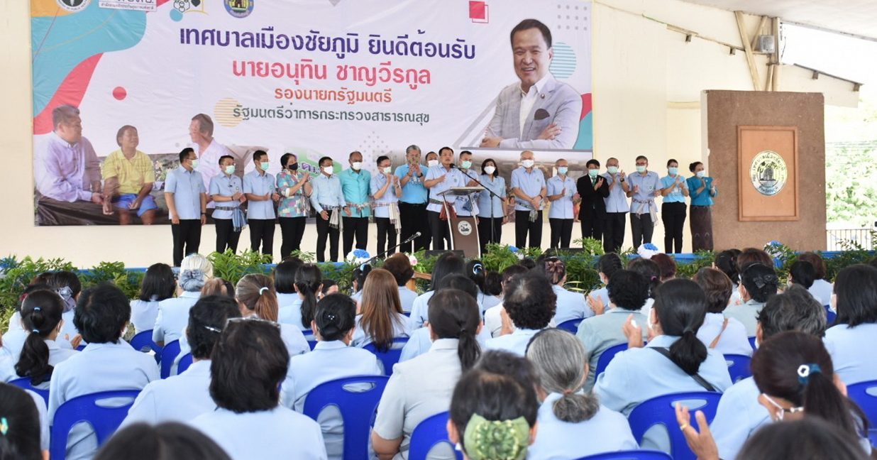 วันนี้ (22ส.ค.)ที่หน่วยไตเทียม ศูนย์บริการสาธารณสุขเทศบาลเมืองชัยภูมิ จังหวัดชัยภูมิ นายอนุทิน ชาญวีรกูล รองนายกรัฐมนตรีและรัฐมนตรีว่าการกระทรวงสาธารณสุข กล่าวกับอสม.ก่อนเปิดหน่วยไตเทียม ศูนย์บริการสาธารณสุขเทศบาลเมืองชัยภูมิ ว่า นายกรัฐมนตรีและตน ขอขอบคุณ อสม.ทั่วประเทศกว่า 1,040,000 คน ด้วยใจจริง ที่ทำงานอย่างหนักตลอดช่วงเวลาที่มีการแพร่ระบาดของโรคโควิด-19 ทั้งการลงพื้นที่เคาะประตูบ้าน เฝ้าระวังประชาชนกลุ่มเสี่ยง คัดกรอง และให้ความรู้แก่คนในชุมชน ช่วยให้คนไทยปลอดภัยจากโรคโควิด 19 ประเทศพ้นวิกฤติมาจนเป็นที่ชื่นชม และได้รับการยอมรับจากนานาประเทศทั่วโลก