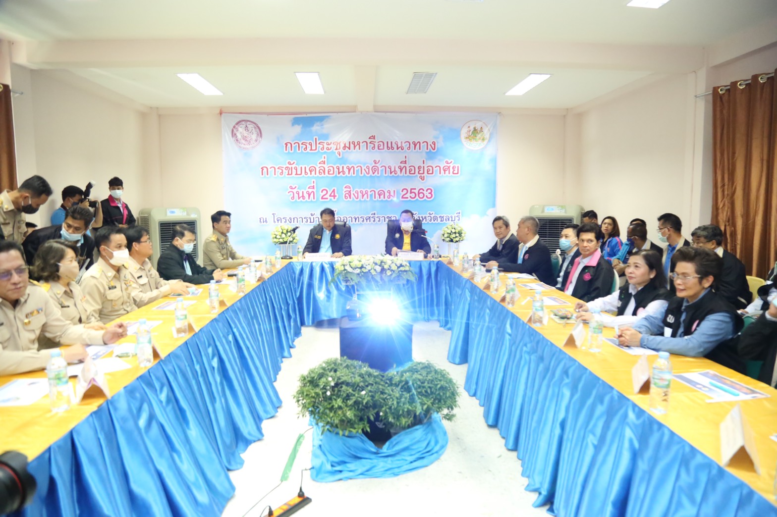 วันนี้ (24 ส.ค.)นายจุติ ไกรฤกษ์ รัฐมนตรีว่าการกระทรวงการพัฒนาสังคมและความมั่นคงของมนุษย์ (รมว.พม.) ลงพื้นที่ จ.ชลบุรี ประชุมหารือร่วมกับนายสุชาติ ชมกลิ่น รัฐมนตรีว่าการกระทรวงแรงงาน เกี่ยวกับความร่วมมือในการขับเคลื่อนงานด้านที่อยู่อาศัย สำหรับผู้มีรายได้น้อย และผู้ใช้แรงงานภาคอุตสาหกรรมในพื้นที่พัฒนาพิเศษภาคตะวันออก (EEC) และเขตพื้นที่อุตสาหกรรม ณ โครงการบ้านเอื้ออาทรจังหวัดชลบุรี (ศรีราชา) ต.สุรศักดิ์ อ.ศรีราชา จ.ชลบุรี