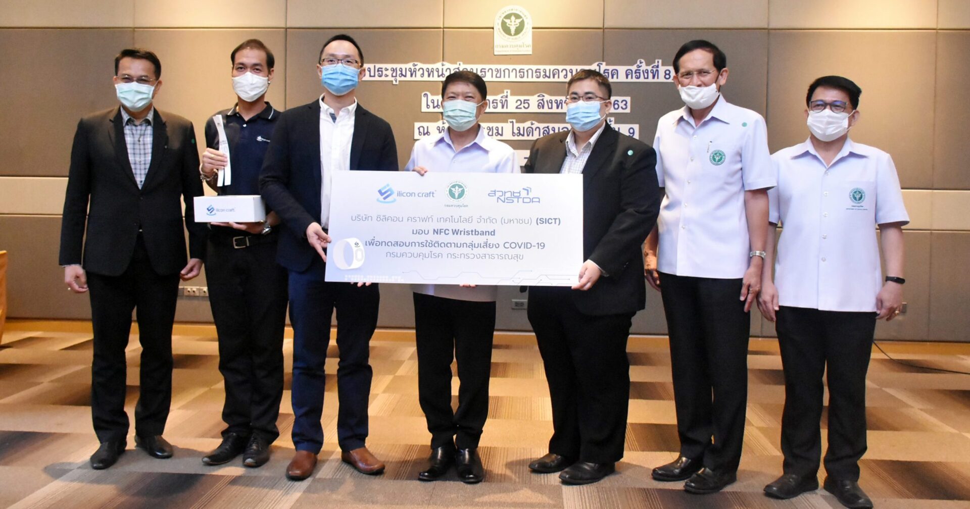 วันนี้ (25ส.ค.) ที่โรงแรมไมด้า งามวงศ์วาน จังหวัดนนทบุรี นพ.สุวรรณชัย วัฒนายิ่งเจริญชัย อธิบดีกรมควบคุมโรค กระทรวงสาธารณสุข (สธ.) และคณะผู้บริหารกรมควบคุมโรค รับมอบผลิตภัณฑ์ต้นแบบสายรัดข้อมือ (NFC Wristband) จำนวน 300 ชิ้น ที่พัฒนาโดยบริษัท ซิลิคอน คราฟท์ เทคโนโลยี จำกัด(มหาชน)เพื่อใช้ในการทดสอบและพัฒนาสำหรับติดตามผู้ป่วยโรคติดเชื้อไวรัสโคโรนา2019 (โควิด 19) หรือผู้กักตัวในระหว่างกระบวนการกักกันตนเอง (Self-Quarantine)