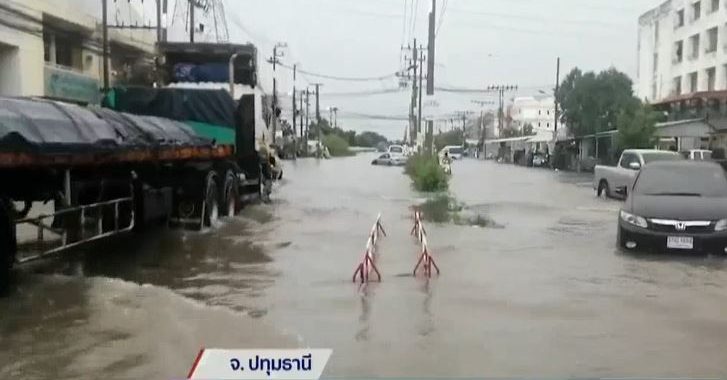 เช่นเดียวกับที่จังหวัดปทุมธานี มีฝนตกหนักต่อเนื่องหลายชั่วโมงตั้งแต่เมื่อคืนที่ผ่านมา ทำให้ถนนทางเข้าหมู่บ้านในตำบลคลองหนึ่ง อำเภอคลองหลวง จังหวัดปทุมธานี มีน้ำท่วมขังสูง 50-60 เซนติเมตร โดยเฉพาะในซอยแปดแยก น้ำท่วมสูง รถที่ขับผ่านเครื่องยนต์ดับเสียหาย และยังไม่มีทีท่าลดลง สร้างความเดือดร้อนให้กับผู้ที่ต้องใช้เส้นทาง เนื่องจากในซอยมีโรงงานขนาดเล็กตั้งอยู่.-สำนักข่าวไทย