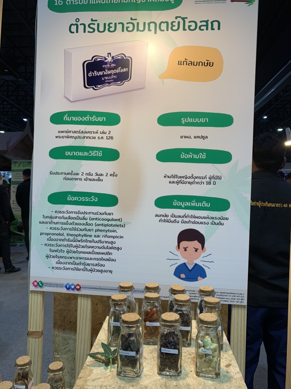 ด้าน นพ.มรุต จิรเศรษฐสิริ อธิบดีกรมการแพทย์แผนไทยและการแพทย์ทางเลือก กล่าวว่า ภายในงานมหกรรมฯ แบ่งเป็น 4 โซนกิจกรรม คือ โซนวิชาการ อบรมตลาดความรู้ ฟรี 18 หลักสูตร โซนภูมิปัญญา อาทิ นิทรรศการ “นวดไทย” จัดแสดงเครื่องยาสมุนไพร แจกหนังสือสมุนไพรบันทึกของแผ่นดิน 12 กัญชาและผองเพื่อน สมุนไพรเพื่อระบบประสาทและจิตใจ 200 เล่ม/วัน, กล้าไม้ 300 ต้น/วัน และเมล็ดพันธุ์ฟ้าทะลายโจร โซนบริการ มีบริการคลินิกกัญชาทางการแพทย์แผนไทย ให้คำปรึกษา ตรวจรักษา และจ่ายยาที่มีกัญชาปรุงผสม และคลินิกการแพทย์แผนไทยและการแพทย์ผสมผสาน บริการฟรี และโซนผลิตภัณฑ์ Thai Herbal Pavilion นำเสนอร้าน “การบูร” จำหน่ายผลิตภัณฑ์สมุนไพรระดับพรีเมียม, Business Matching Online จำหน่ายสินค้า/อาหาร/ อุปกรณ์ดูแลสุขภาพ ทั้งแบบ On Line และ On Site กว่า 500 ร้านค้า