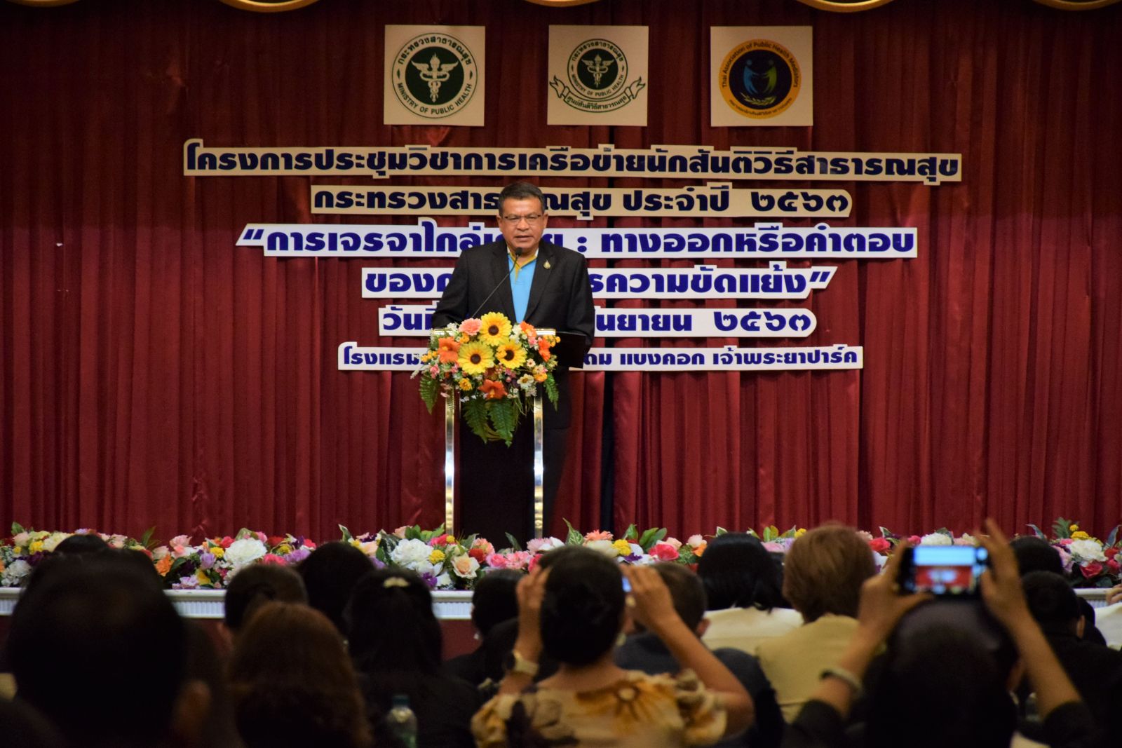 บ่ายวันนี้ (2ก.ย.) ที่โรงแรมเจ้าพระยาปาร์ค กรุงเทพฯ นพ.ยงยศ ธรรมวุฒิ รองปลัดกระทรวงสาธารณสุข เปิดประชุมวิชาการเครือข่ายนักสันติวิธีสาธารณสุข กระทรวงสาธารณสุข ประจำปี 2563 “การเจรจาไกล่เกลี่ย : คำตอบของการจัดการความขัดแย้ง” เพื่อเป็นเวทีการแลกเปลี่ยนเรียนรู้ทางวิชาการ นำเสนอนวัตกรรมจากปฏิบัติงานการไกล่เกลี่ย สร้างเครือข่ายความร่วมมือทางด้านสันติวิธี บรูณาการร่วมกันระหว่างหน่วยงานทั้งภายในและภายนอกสังกัดกระทรวงสาธารณสุข โดยมีผู้รับผิดชอบงานรับเรื่องร้องเรียนและเจรจาไกล่เกลี่ยในโรงพยาบาลสังกัดกระทรวงสาธารณสุข กรุงเทพมหานคร กระทรวงกลาโหม สำนักงานตำรวจแห่งชาติ มหาวิทยาลัยทุกแห่ง คณะกรรมการไกล่เกลี่ยส่วนกลางและภูมิภาค ผู้รับผิดชอบงาน 2P Safety ประจำเขตสุขภาพ 13 เขต และผู้เกี่ยวข้องเข้าร่วมประชุมกว่า 300 คน